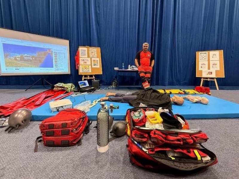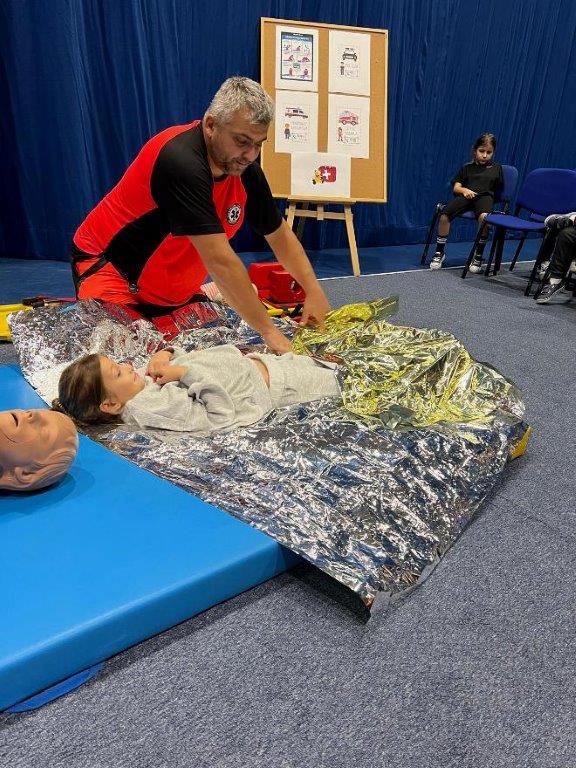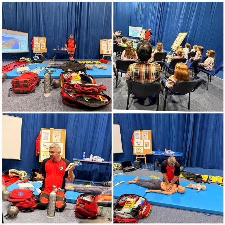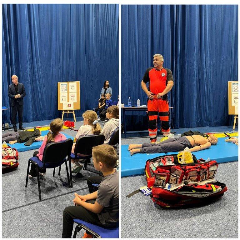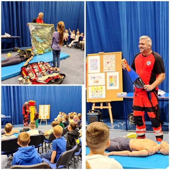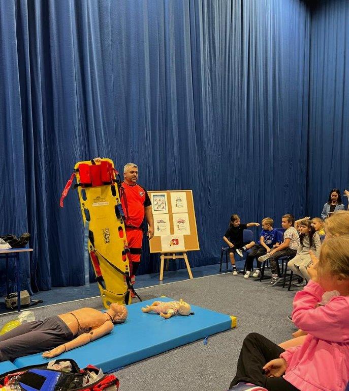 W dniu 26 września 2025 roku w naszej szkole odbyło się niezwykle interesujące spotkanie z ratownikiem medycznym – panem Grzegorzem Bulzakiem. Podczas wizyty pan ratownik opowiedział uczniom, na czym polega jego praca i z jakimi wyzwaniami spotyka się każdego dnia. Dzieci z zaciekawieniem obejrzały film edukacyjny, który w prosty sposób pokazał, jak udzielać pierwszej pomocy i dlaczego szybka reakcja może uratować komuś życie. Pan Grzegorz zaprezentował również profesjonalnie wyposażoną torbę ratownika medycznego, wyjaśniając, do czego służą poszczególne przedmioty. Dzieci miały okazję zobaczyć m.in. bandaże, opatrunki, maseczki do resuscytacji oraz ciśnieniomierz. W trakcie spotkania uczniowie uczyli się, jak zachować się w sytuacjach zagrożenia życia, czy też jak poprawnie wezwać pomoc, dzwoniąc na numer alarmowy 112. Ratownik przypomniał również, jak ważne jest dbanie o zdrowie – zdrowe odżywianie, codzienna higiena oraz unikanie niebezpiecznych sytuacji mogą zapobiec wielu problemom. Serdecznie dziękujemy panu Grzegorzowi Bulzakowi za kolejną wizytę w naszej szkole oraz za ciekawe, pełne pasji i praktycznej wiedzy zajęcia. Już nie możemy się doczekać następnego spotkania!
