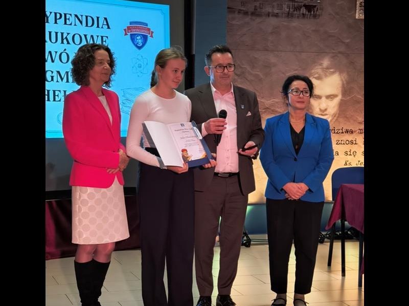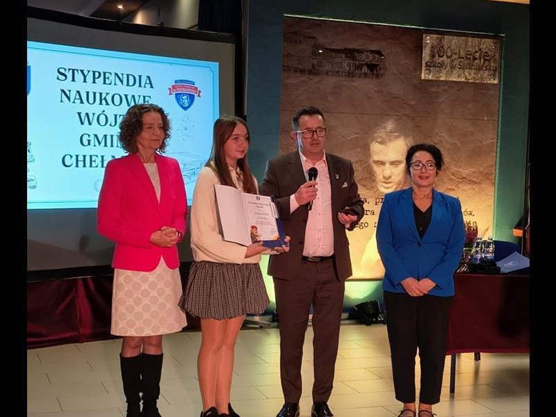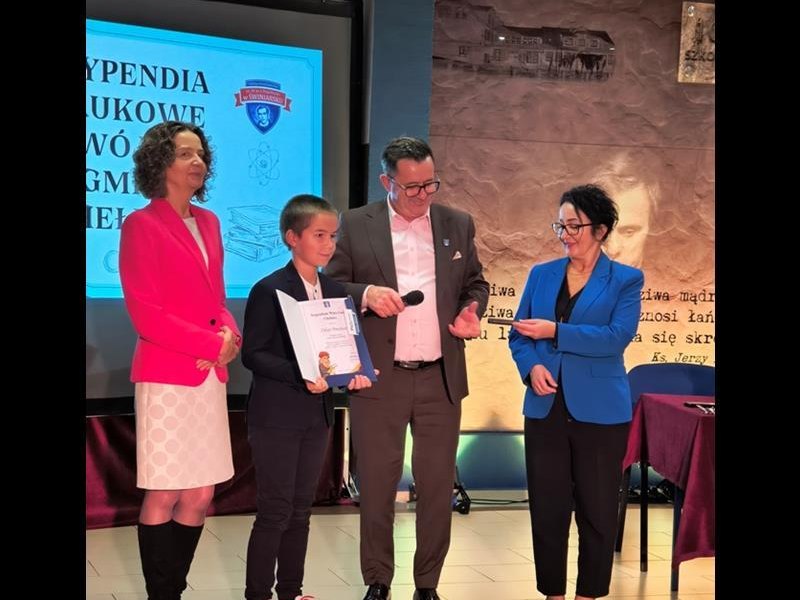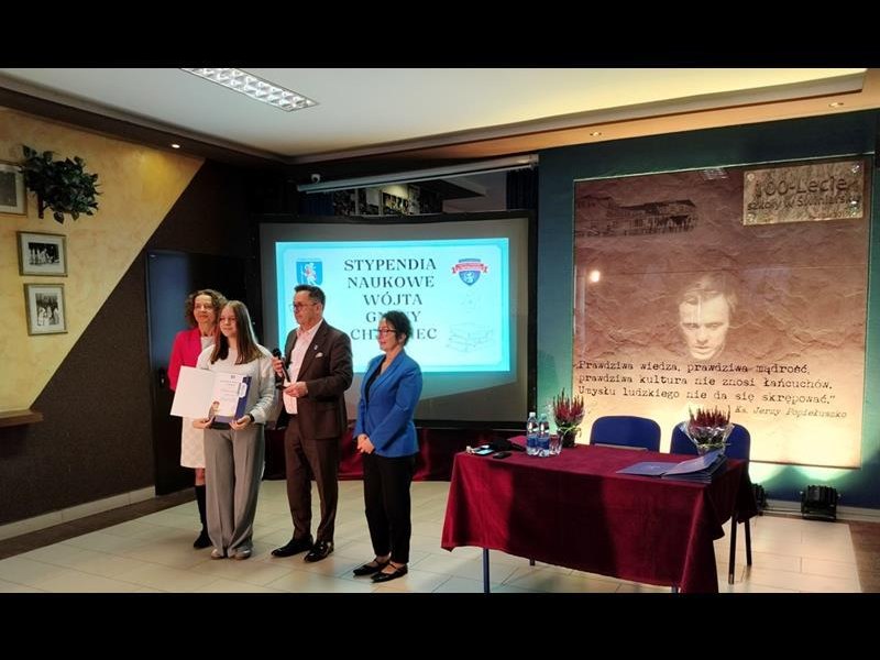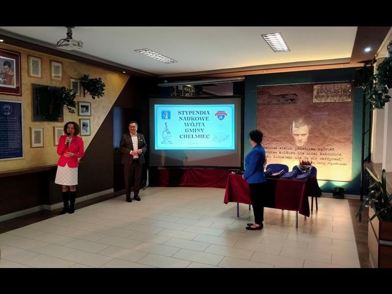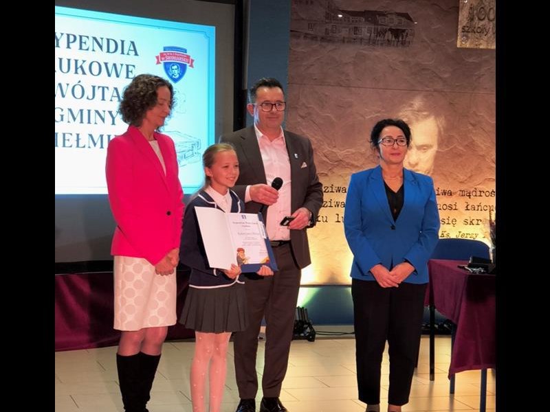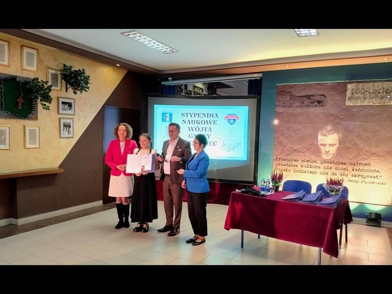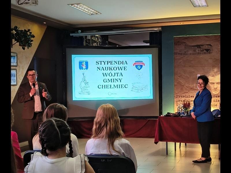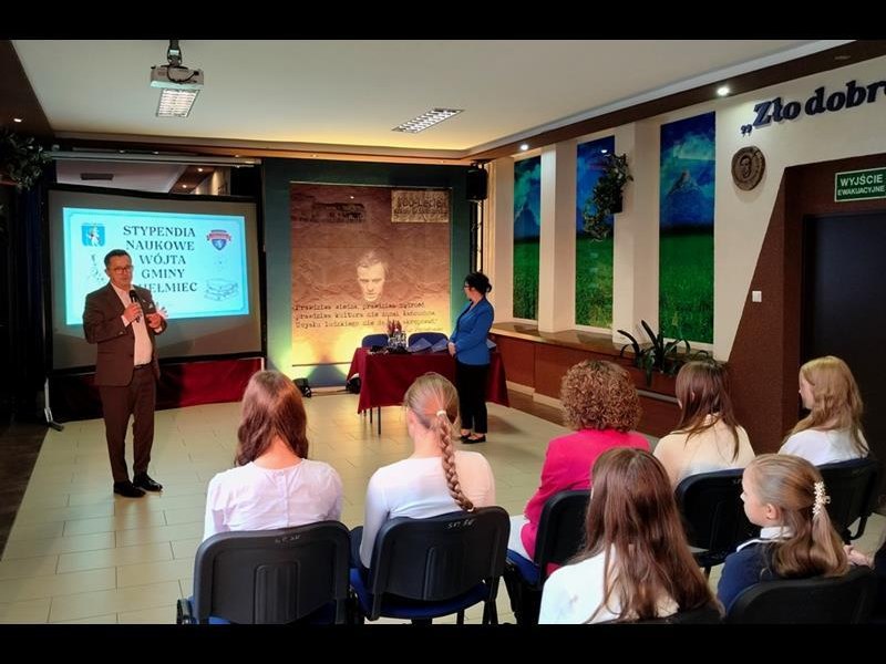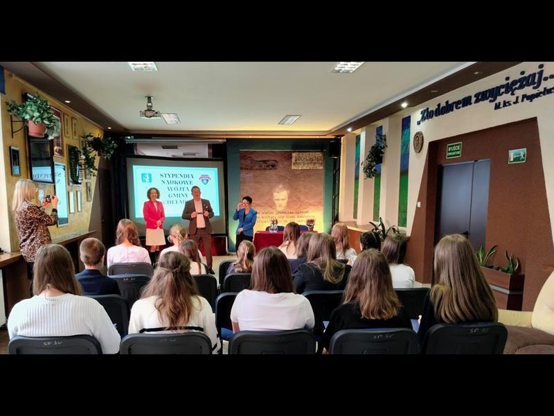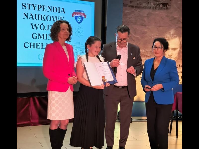 W dniu 3 października 2025 r. nasza szkoła gościła Wójta Gminy Chełmiec pana Stanisława Kuzaka oraz Dyrektor Gminnego Zespołu Edukacji panią Kingę Broszkiewicz- Kuchno na uroczystości wręczenia stypendiów Wójta Gminy Chełmiec. Pan Wójt uhonorował uczniów, którzy w ubiegłym roku szkolnym uzyskali najwyższe wyniki w nauce wręczając im dyplomy oraz upominki. Pogratulował uczniom i ich rodzicom wyników oraz podziękował nauczycielom zaangażowania w edukację dzieci i młodzieży. Wraz z panem Wójtem nagrody wręczała pani wicedyrektor mgr Lidia Zbieg. Stypendia otrzymało 27 uczniów naszej szkoły.