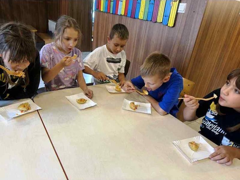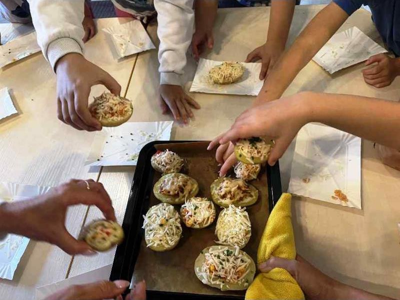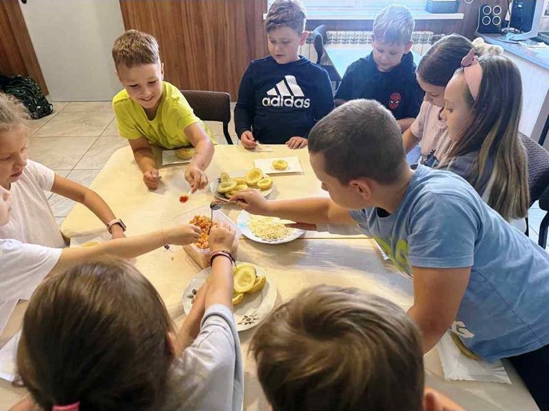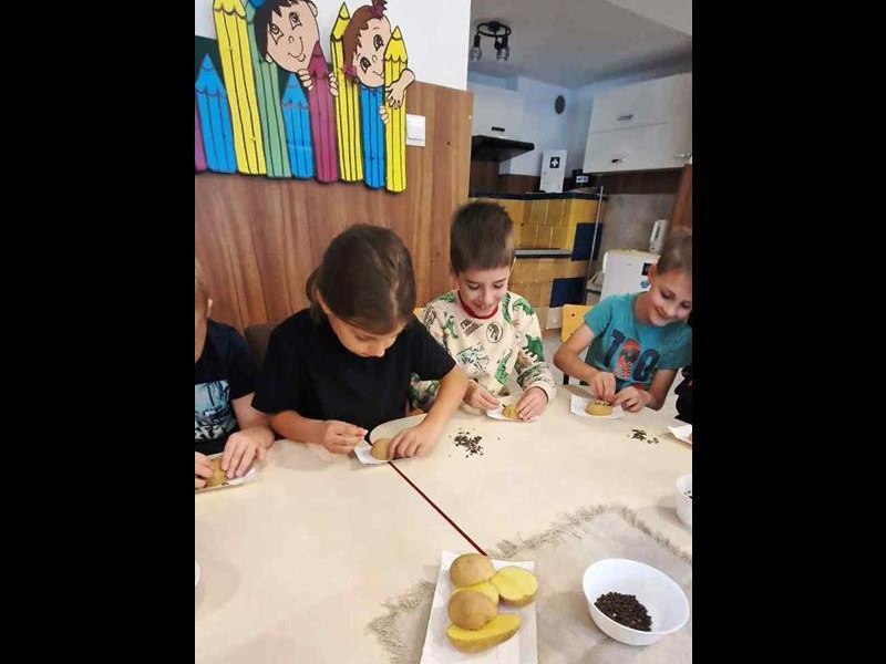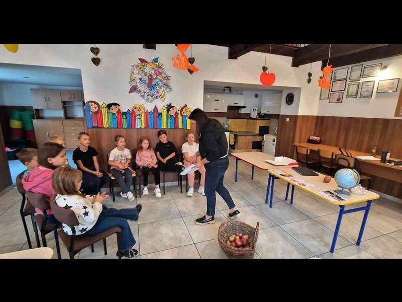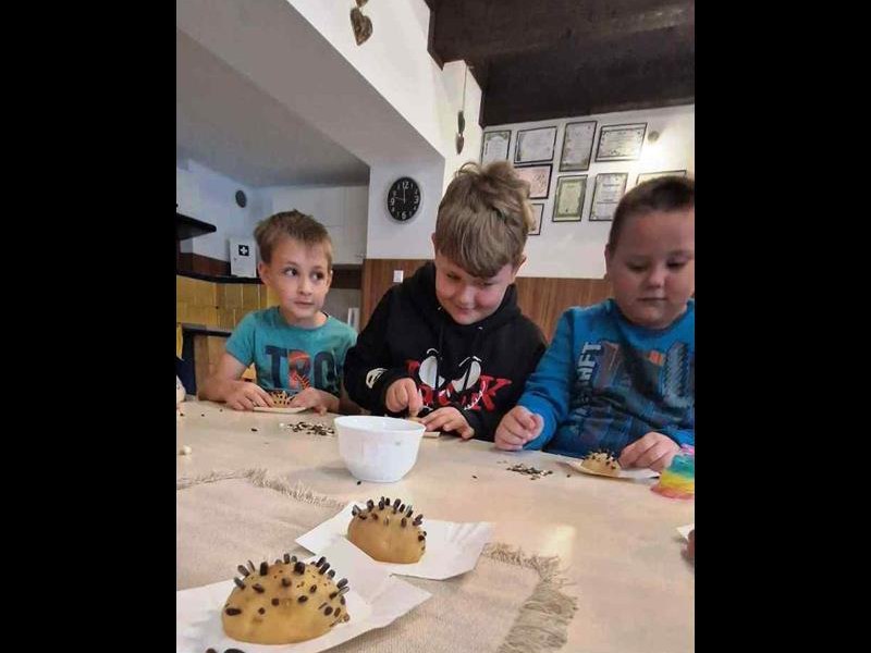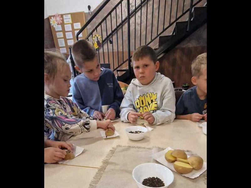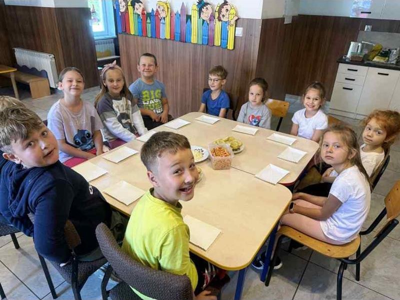 W świetlicy szkolnej odbyły się wyjątkowe zajęcia z okazji Dnia Ziemniaka. Była to doskonała okazja, aby w niecodzienny i ciekawy sposób poszerzyć wiedzę oraz wspólnie spędzić czas. Naszym szczególnym gościem była pani Agata Kwit z Gospodarstwa Edukacyjnego w Zielonym Gaju, która w niezwykle interesujący sposób przedstawiła dzieciom tematykę związaną z ziemniakiem. Uczniowie dowiedzieli się, skąd pochodzi ta popularna roślina, poznali jej różne odmiany i ich zastosowanie w kuchni. Pani Agata zwróciła uwagę na bogaty skład odżywczy ziemniaków, dzięki któremu są one ważnym elementem codziennej diety. Nie zabrakło również rozmowy o różnorodnych potrawach ziemniaczanych, które goszczą na naszych stołach – od klasycznego purée i frytek, aż po bardziej wyszukane dania. Część praktyczna zajęć była równie pasjonująca. Dzieci miały możliwość przyjrzenia się procesowi uprawy ziemniaka, a następnie samodzielnie przygotowały faszerowane pieczone ziemniaki. Do degustacji uczniowie zaprosili Dyrektora szkoły Pana Pawła Łabudę, oraz Panią Dyrektor Lidię Zbieg. Nie brakowało przy tym radości i kulinarnej kreatywności. Dodatkową atrakcją były zajęcia plastyczno-techniczne, podczas których uczniowie wykonali wesołe jeżyki z ziemniaków oraz wykonanie pieczątek. Ta forma pracy pozwoliła połączyć zdobytą wiedzę z twórczą zabawą i rozwijaniem zdolności manualnych.