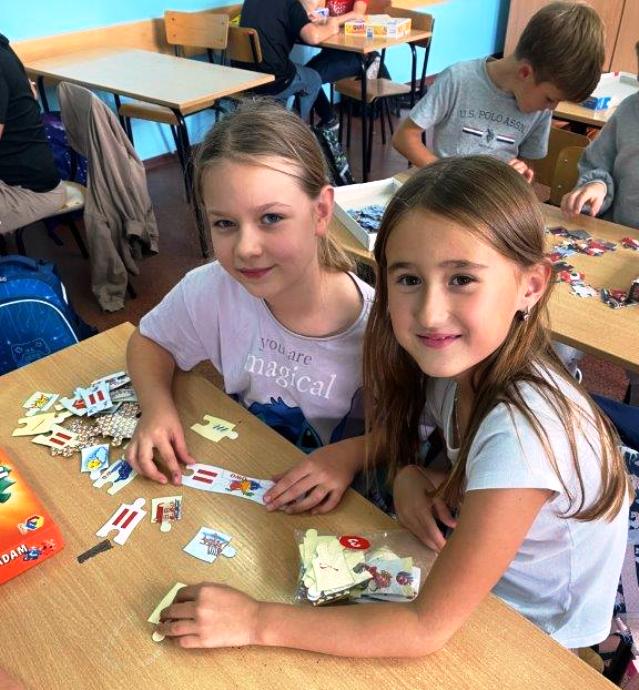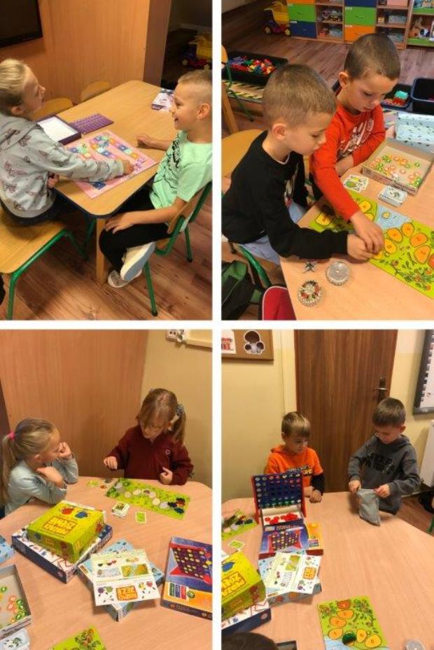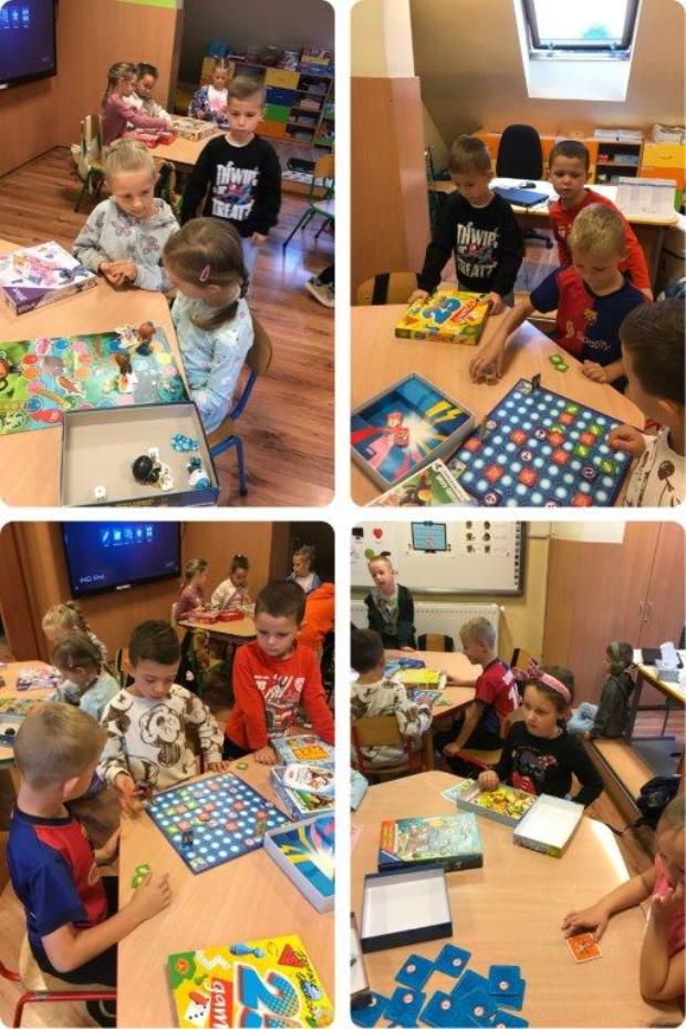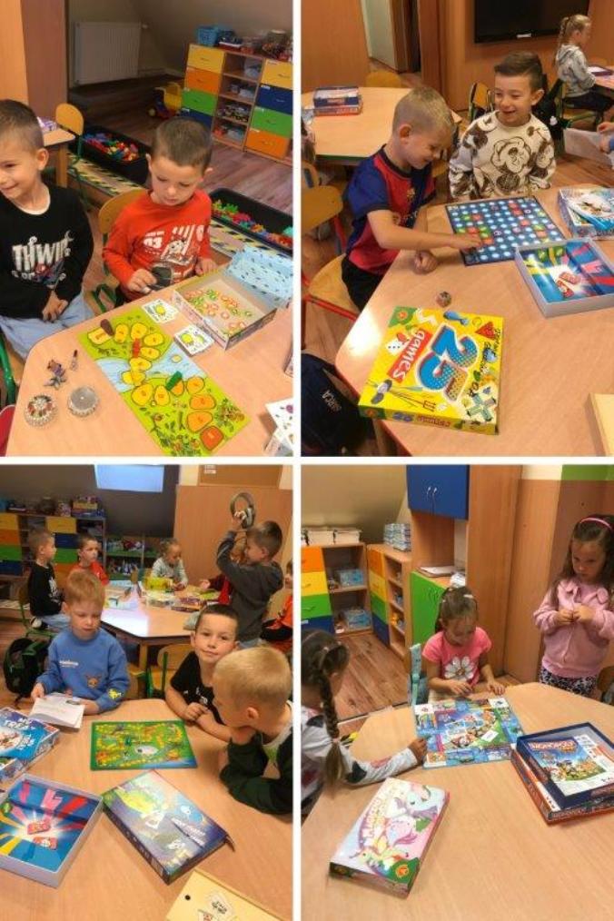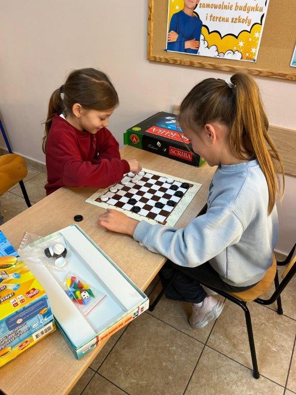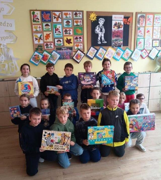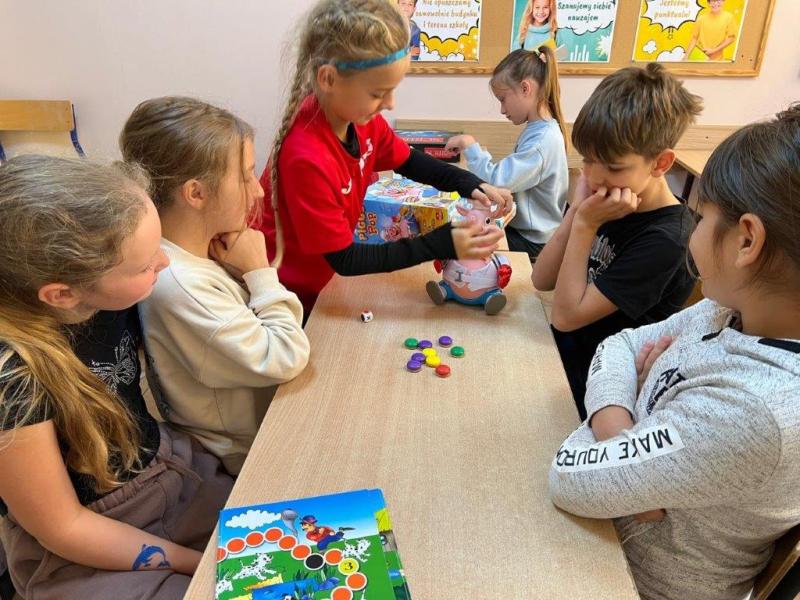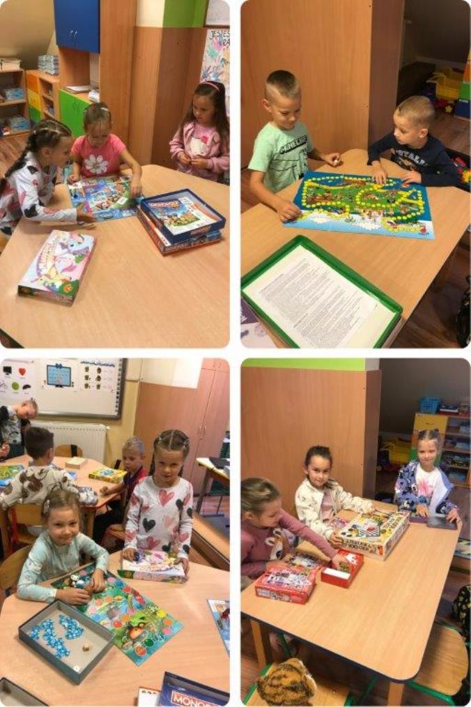 Dnia 10 października 2025r. w naszej szkole odbył się Dzień Gier Planszowych. W wydarzeniu wzięli udział uczniowie klas 0-3, którzy mieli okazję wspólnie spędzić czas, grając w różnorodne gry planszowe, karciane oraz logiczne. Celem wydarzenia było promowanie alternatywnych form spędzania czasu wolnego, integracja uczniów oraz rozwijanie umiejętności logicznego myślenia i zdrowej rywalizacji. Dzięki wspólnej zabawie panowała bardzo miła i koleżeńska atmosfera. Uczniowie chętnie uczyli się zasad nowych gier, pomagali sobie nawzajem i z zaangażowaniem uczestniczyli w rozgrywkach.