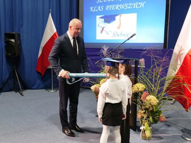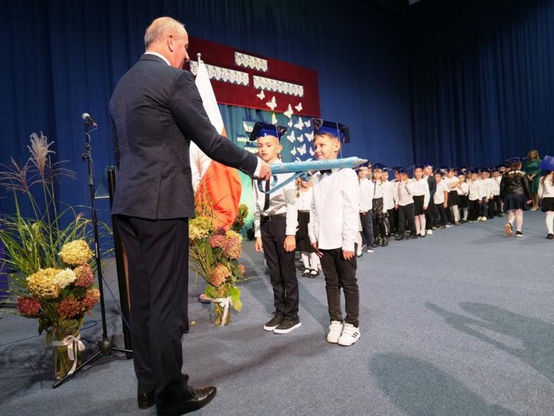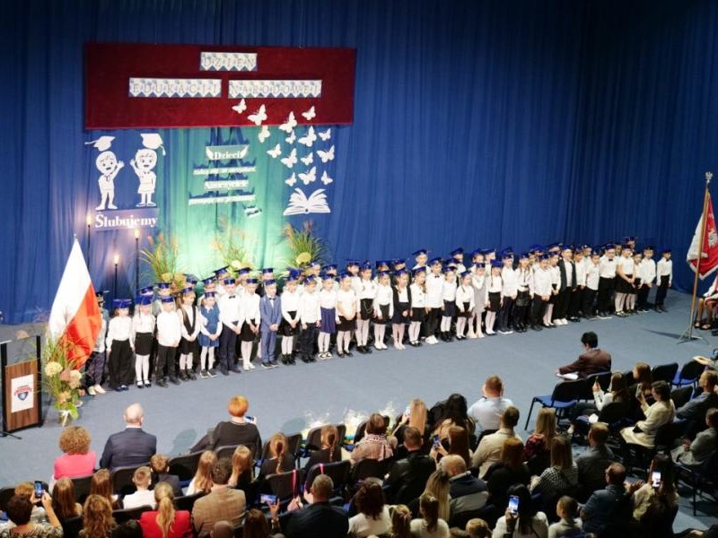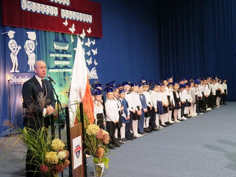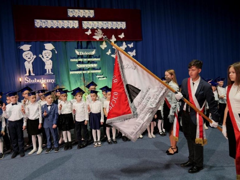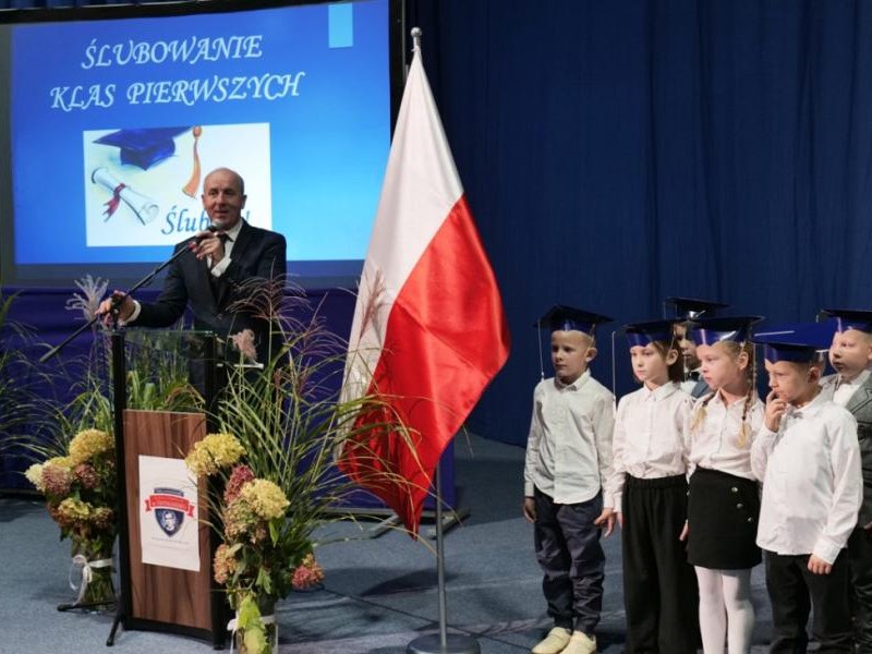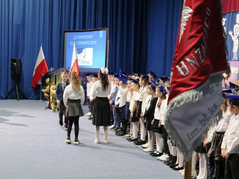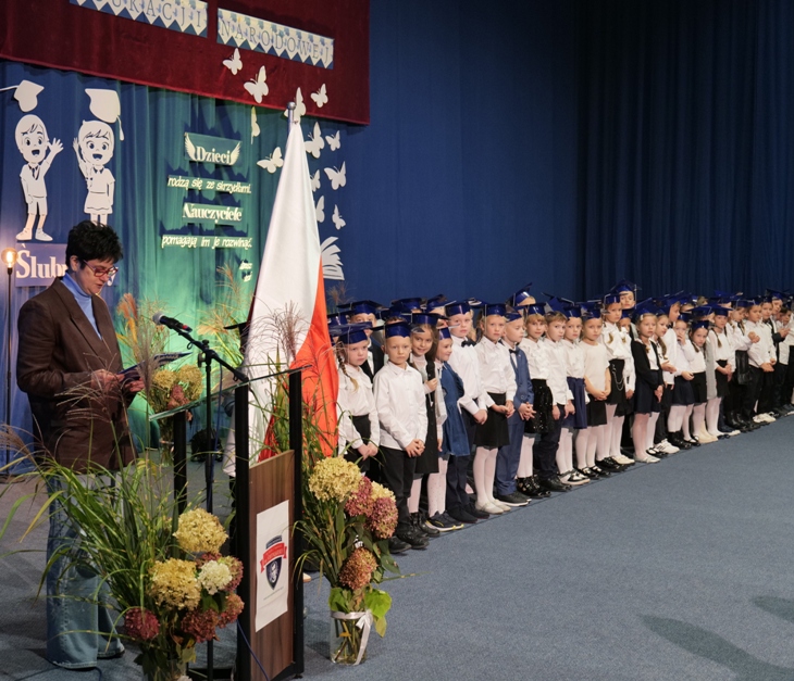 Ślubowanie klas pierwszych to od lat niezwykłe i podniosłe wydarzenie, w kalendarzu uroczystości Szkoły Podstawowej im. bł. ks. Jerzego Popiełuszki w Świniarsku. W tym roku miało ono miejsce 14 października 2025 r., w Dniu Edukacji Narodowej. Był to dzień długo wyczekiwany przez pierwszaków. Powodem z pewnością była sama uroczystość, jak również niecodzienność stroju, który mieli założyć tego dnia najmłodsi uczniowie, czyli strój galowy i birety. Podczas ceremonii pierwszoklasiści naszej szkoły, w obecności dyrekcji szkoły pana mgr Pawła Łabudy oraz pani mgr Lidii Zbieg, wychowawców, nauczycieli, kolegów koleżanek z klas drugich i trzecich oraz swoich rodziców złożyli ślubowanie na sztandar szkoły. Następnie Dyrektor szkoły dokonał aktu pasowania na ucznia, oraz wręczył każdej klasie prezent - kamizelki odblaskowe dla każdego dziecka, poprawiające bezpieczeństwo uczniów na drodze, tworząc tym samym tradycję odblaskową dla uczniów klas pierwszych. Następnie Samorząd Uczniowski złożył Dyrekcji, wszystkim nauczycielom oraz pracownikom szkoły życzenia z okazji Dnia Edukacji Narodowej. W tym dniu Dyrektor szkoły dziękując nauczycielom i pracownikom za ich pracę i zaangażowanie wręczył nagrody Dyrektora szkoły. Podkreślił, iż w dzisiejszych czasach jest to zawód niełatwy. Następnie w imieniu Rady Rodziców życzenia złożyła pani Angelika Poręba. Podczas części artystycznej pierwszaki zaprezentowały swoje talenty wokalne, recytatorskie, otrzymując gromkie brawa od zgromadzonej publiczności. Po uroczystości, dzieci udały się do klas na poczęstunek przygotowany przez rodziców. Wychowawczynie wręczyły pierwszoklasistom pamiątkowe dyplomy, a rodzice upominki. Wszystkim pierwszakom życzymy wielu sukcesów w murach naszej szkoły!