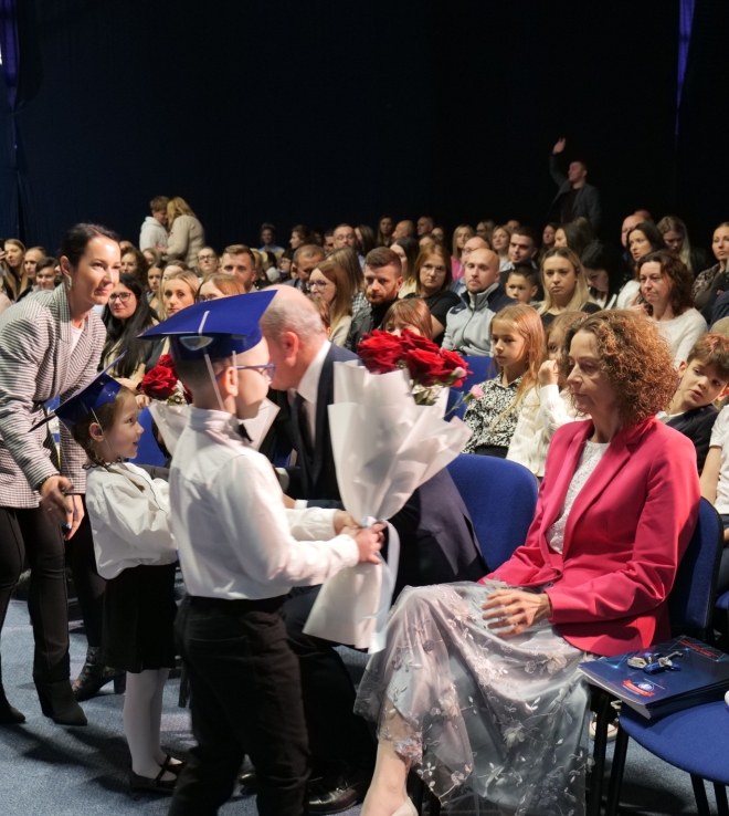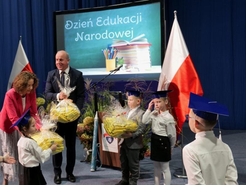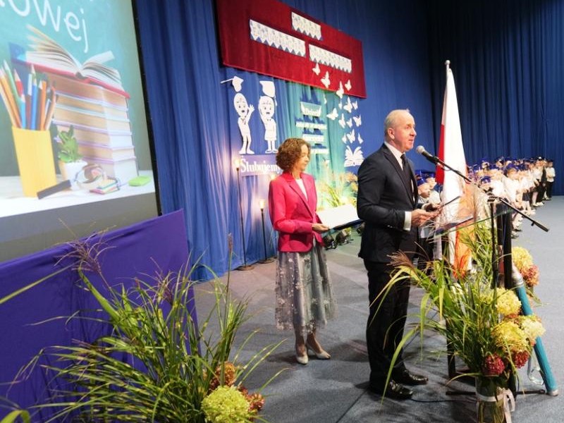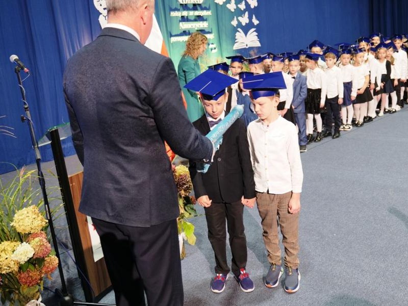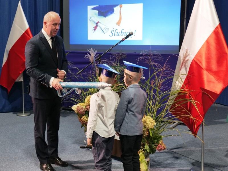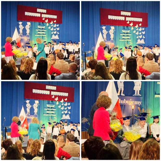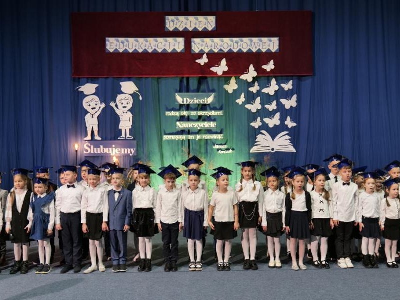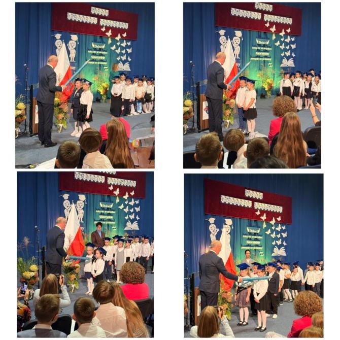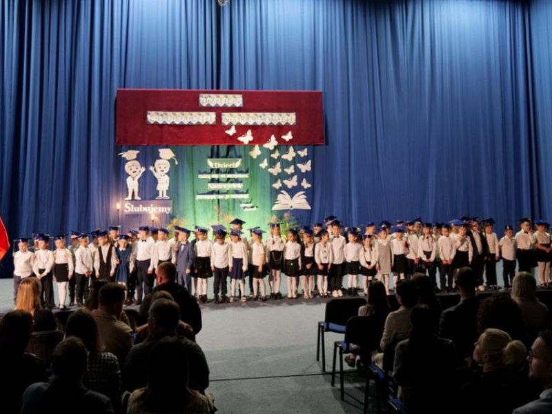 Ślubowanie klas pierwszych to od lat niezwykłe i podniosłe wydarzenie, w kalendarzu uroczystości Szkoły Podstawowej im. bł. ks. Jerzego Popiełuszki w Świniarsku. W tym roku miało ono miejsce 14 października 2025 r., w Dniu Edukacji Narodowej. Był to dzień długo wyczekiwany przez pierwszaków. Powodem z pewnością była sama uroczystość, jak również niecodzienność stroju, który mieli założyć tego dnia najmłodsi uczniowie, czyli strój galowy i birety. Podczas ceremonii pierwszoklasiści naszej szkoły, w obecności dyrekcji szkoły pana mgr Pawła Łabudy oraz pani mgr Lidii Zbieg, wychowawców, nauczycieli, kolegów koleżanek z klas drugich i trzecich oraz swoich rodziców złożyli ślubowanie na sztandar szkoły. Następnie Dyrektor szkoły dokonał aktu pasowania na ucznia, oraz wręczył każdej klasie prezent - kamizelki odblaskowe dla każdego dziecka, poprawiające bezpieczeństwo uczniów na drodze, tworząc tym samym tradycję odblaskową dla uczniów klas pierwszych. Następnie Samorząd Uczniowski złożył Dyrekcji, wszystkim nauczycielom oraz pracownikom szkoły życzenia z okazji Dnia Edukacji Narodowej. W tym dniu Dyrektor szkoły dziękując nauczycielom i pracownikom za ich pracę i zaangażowanie wręczył nagrody Dyrektora szkoły. Podkreślił, iż w dzisiejszych czasach jest to zawód niełatwy. Następnie w imieniu Rady Rodziców życzenia złożyła pani Angelika Poręba. Podczas części artystycznej pierwszaki zaprezentowały swoje talenty wokalne, recytatorskie, otrzymując gromkie brawa od zgromadzonej publiczności. Po uroczystości, dzieci udały się do klas na poczęstunek przygotowany przez rodziców. Wychowawczynie wręczyły pierwszoklasistom pamiątkowe dyplomy, a rodzice upominki. Wszystkim pierwszakom życzymy wielu sukcesów w murach naszej szkoły!