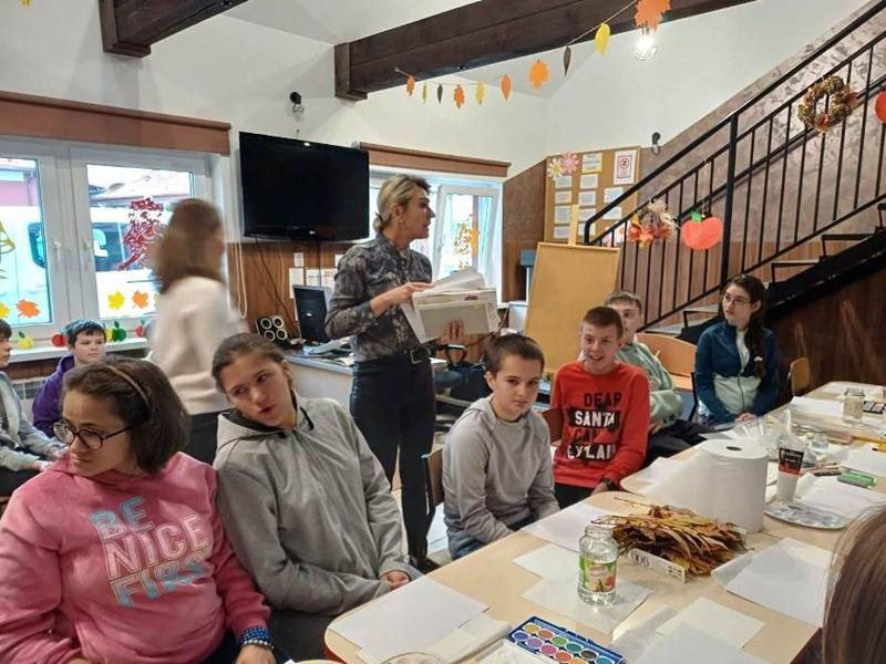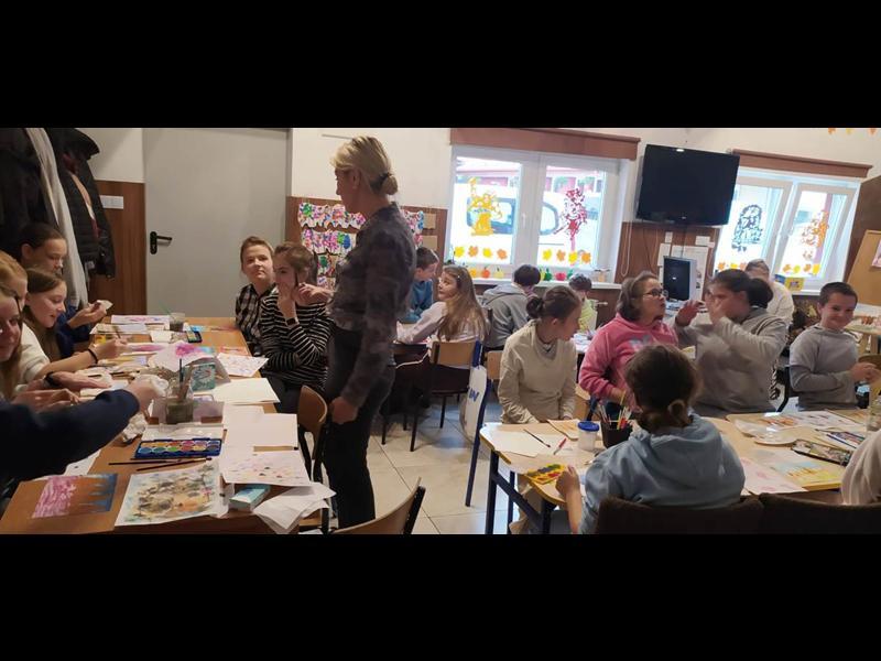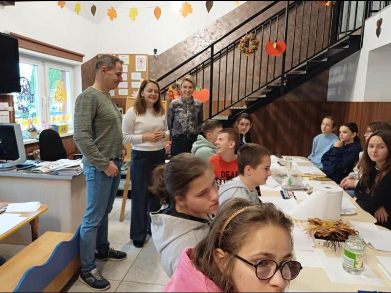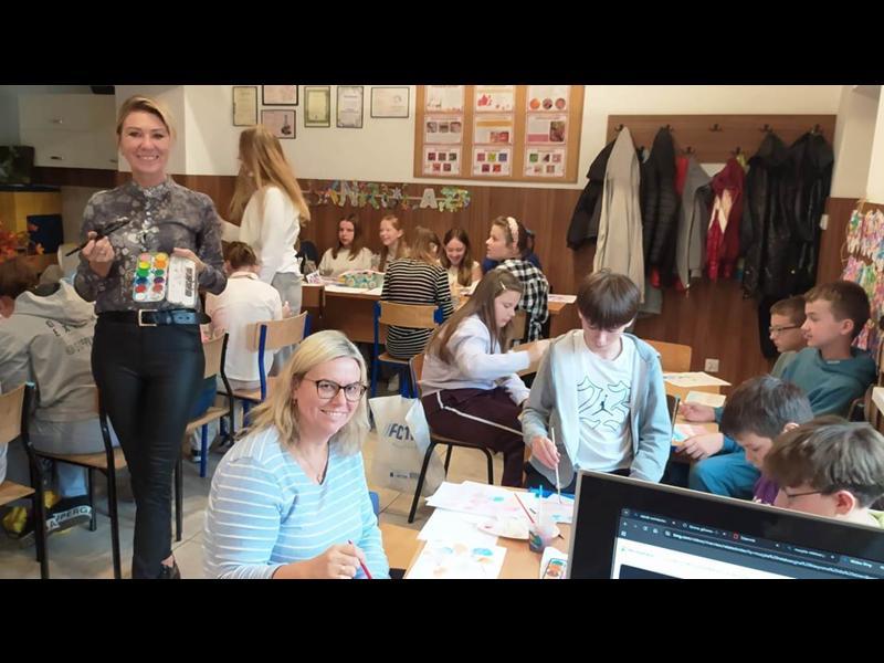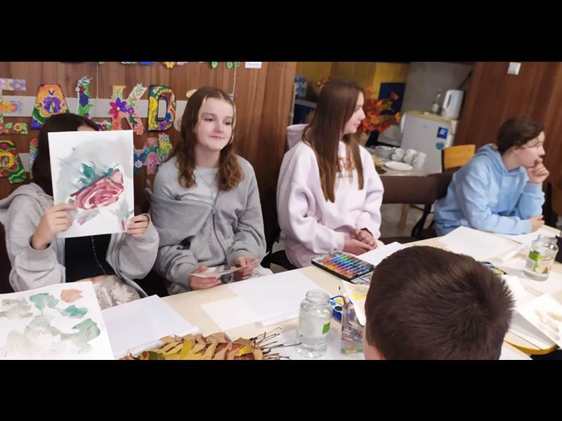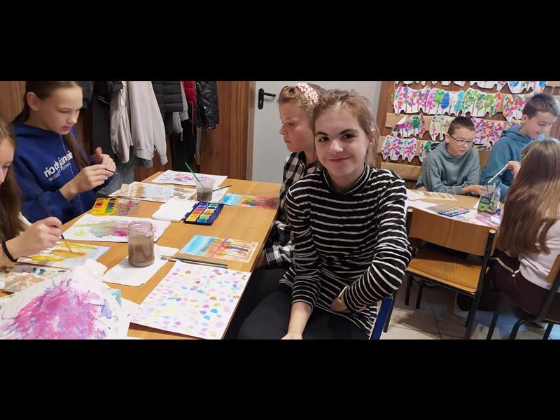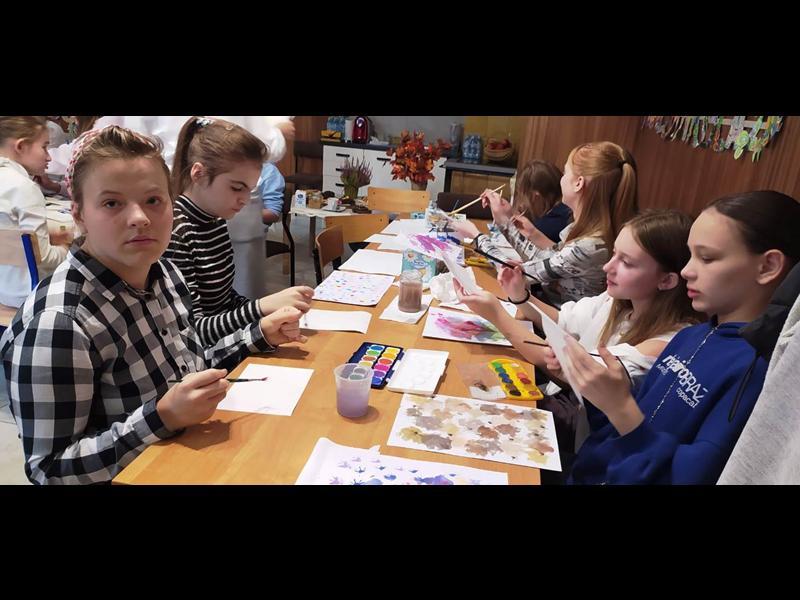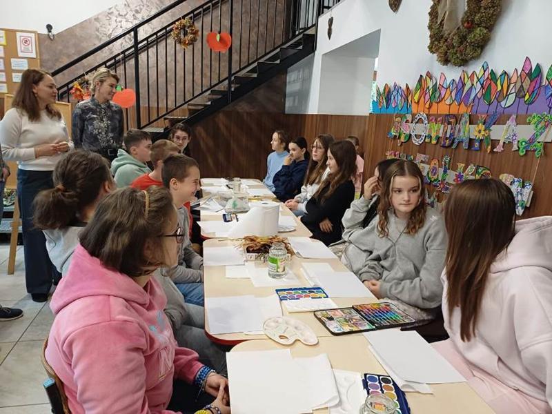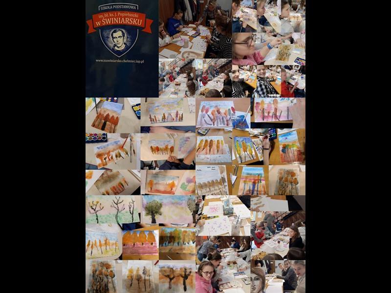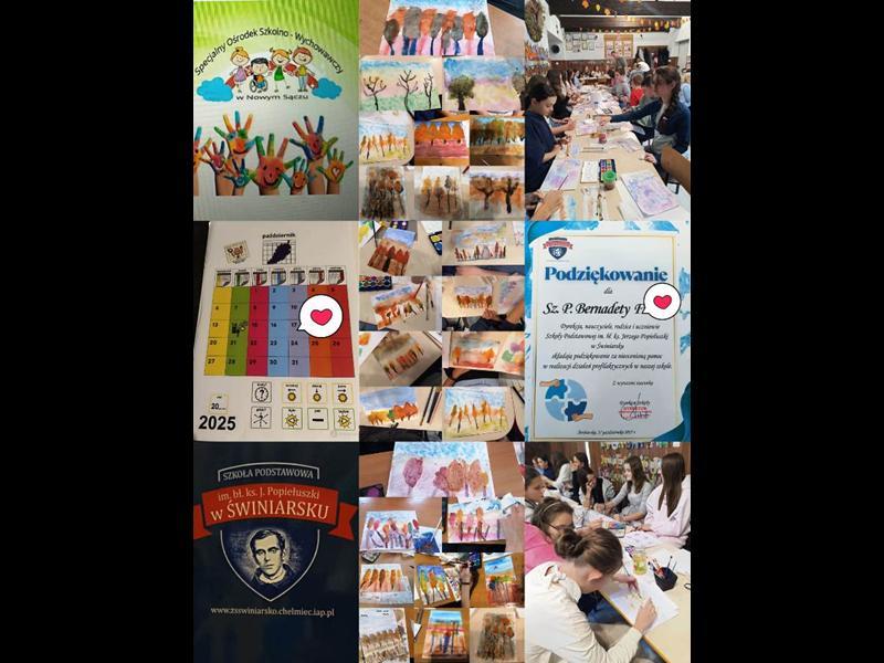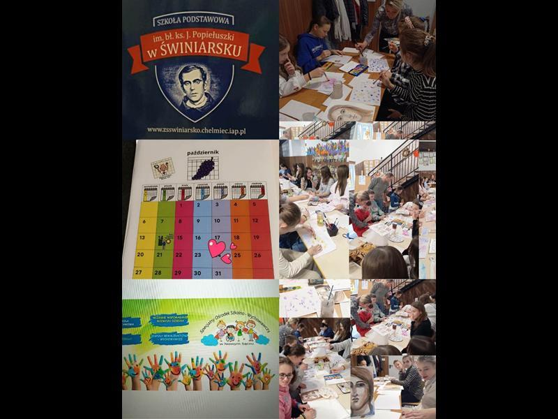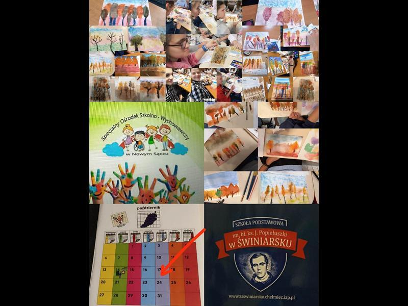 W dniu 17 października uczniowie klasy VI b Szkoły Podstawowej im. bł. ks. Jerzego Popiełuszki w Świniarsku gościli uczniów Specjalnego Ośrodka Szkolno - Wychowawczego w Nowym Sączu pod opieką wychowawczyni pani Bernadety Fulary oraz psychologa pana Krzysztofa Wołoszczuka podczas zajęć innowacyjnych, które prowadziła pani Dorota Leśniak. Tematem prowadzonych zajęć były: "Jesienne liście i kolorowe plamy". Celami ogólnymi było rozwijanie zainteresowań i uzdolnień twórczych w toku działań plastycznych poprzez zastosowanie farby akwarelowej i plakatowej. Natomiast do najważniejszych celów, które zostały osiągnięte to przede wszystkim uśmiech dzieci, podjęta współpraca, zaangażowanie oraz zwiększenie poziomu empatii.