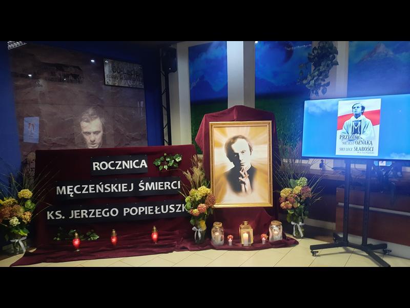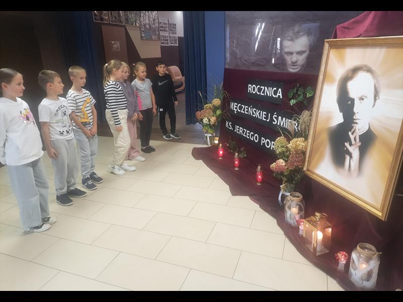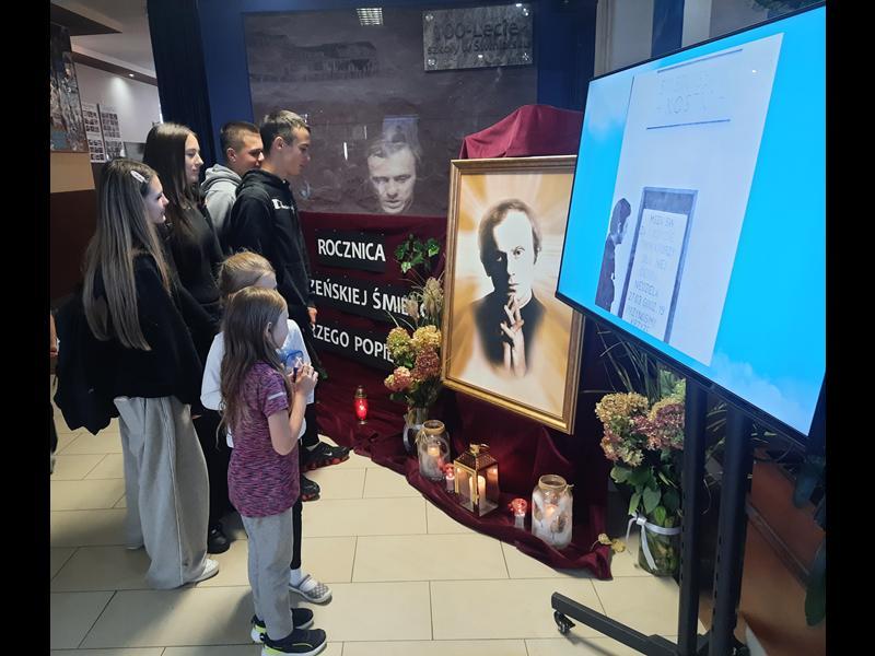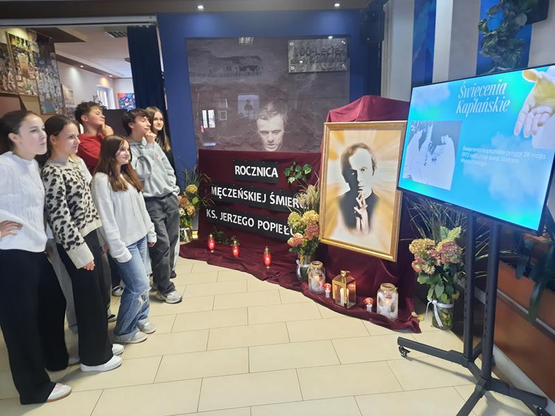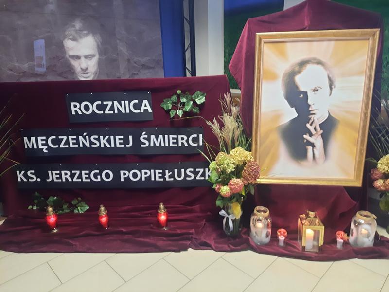 W szkole zorganizowano również kącik pamięci, w którym zaprezentowano fotografie, cytaty oraz materiały biograficzne poświęcone błogosławionemu. Inicjatywa miała na celu pogłębienie wiedzy uczniów o życiu i działalności ks. Popiełuszki oraz kształtowanie postaw opartych na prawdzie, odwadze i miłości do ojczyzny.