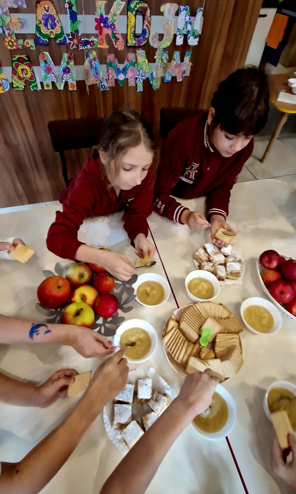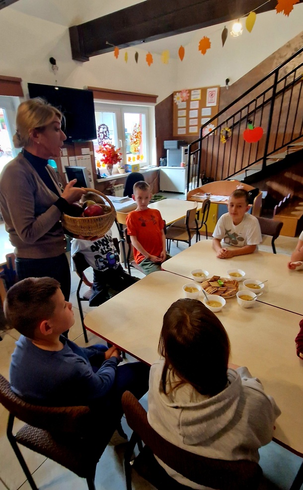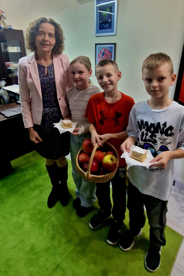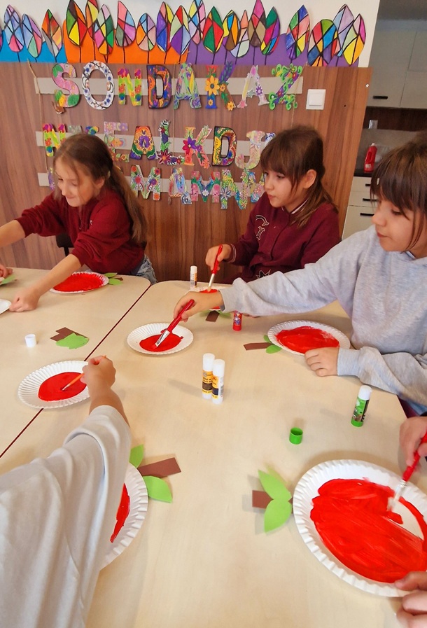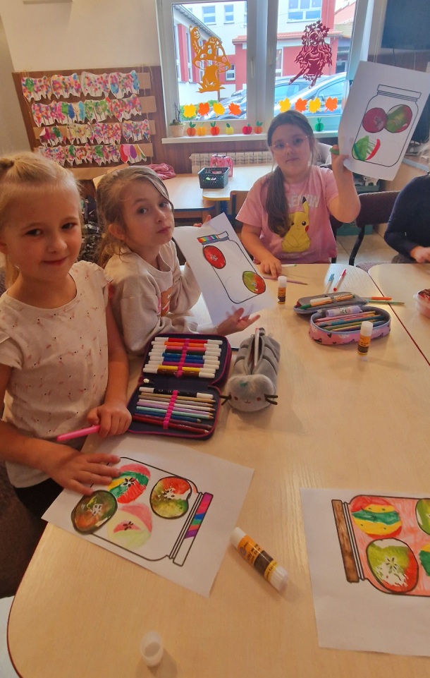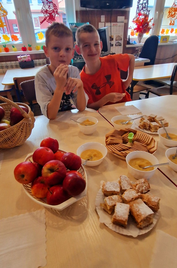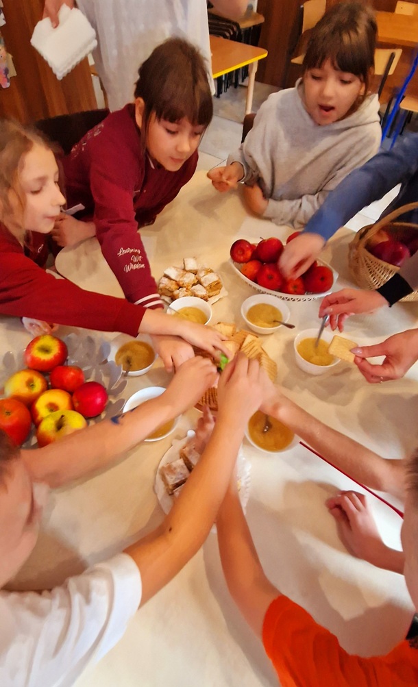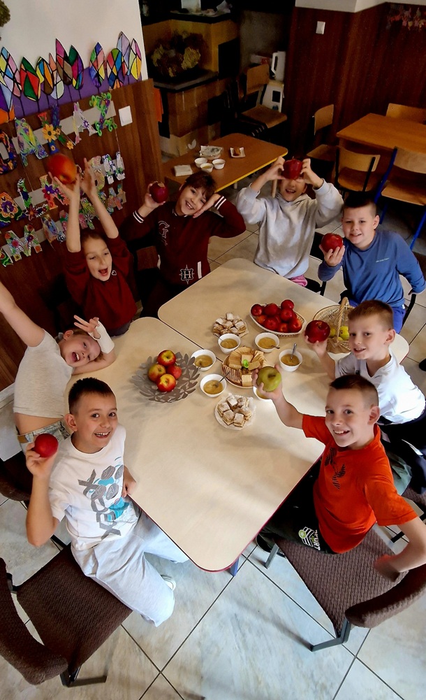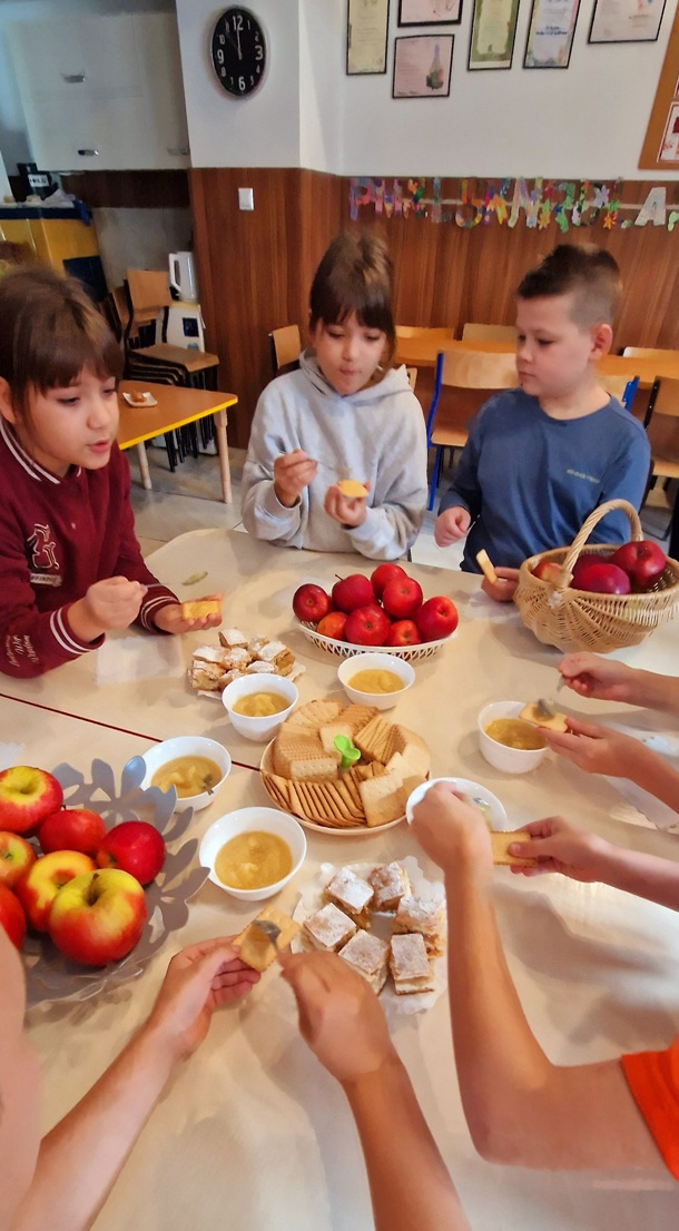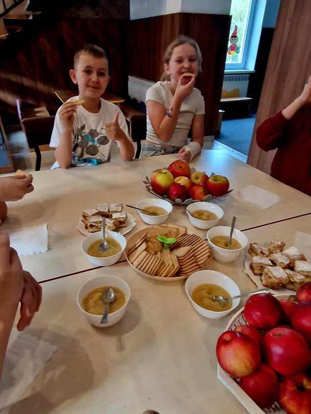W naszej świetlicy odbyły się obchody Dnia Jabłka – wydarzenia promującego zdrowe odżywianie oraz kreatywne działania artystyczne. Dzieci wykonywały liczne prace plastyczne związane tematycznie z jabłkiem, a następnie uczestniczyły w degustacji potraw przygotowanych z tego owocu. W menu znalazły się między innymi świeże jabłka, mus jabłkowy oraz ciasto. Wychowankowie świetlicy udali się do pani Dyrektor Lidii Zbieg i poczęstowali jabłkami oraz pyszną szarlotką. To był naprawdę wyjątkowy, pachnący jabłkami dzień pełen radości, wspólnej zabawy i zdrowych przysmaków!