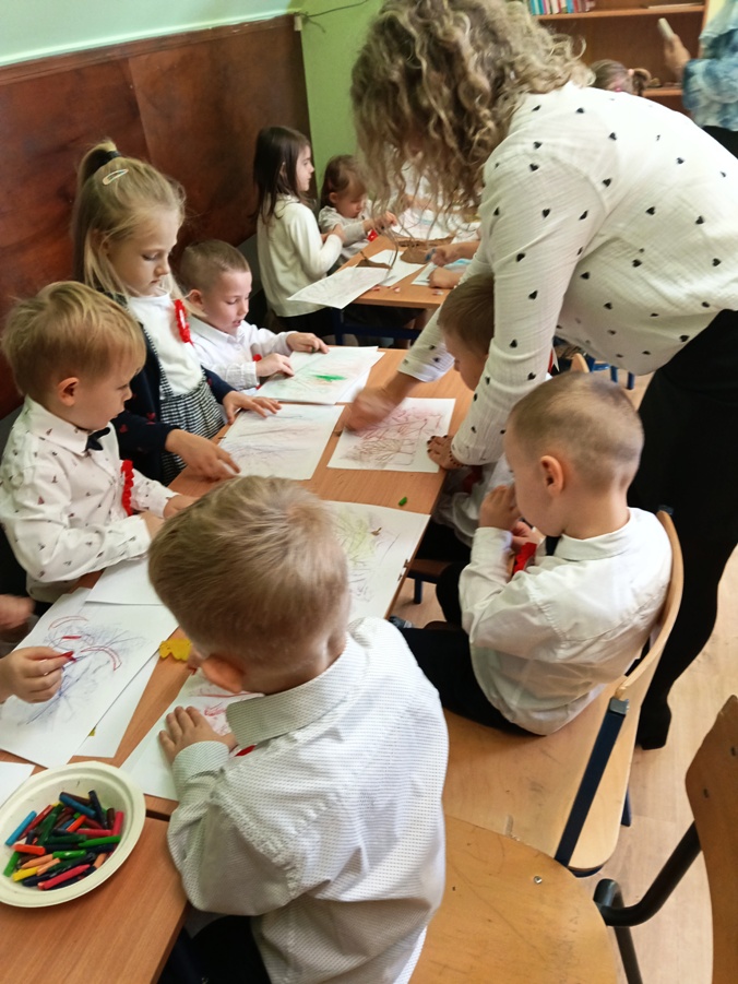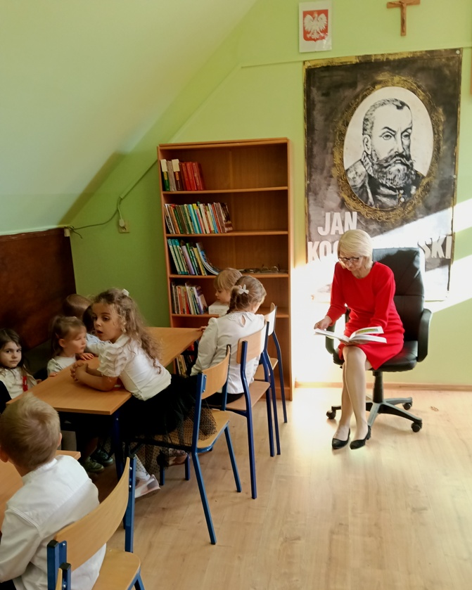Barwy jesieni były przewodnim tematem ostatniego spotkania z grupą przedszkolną. To piękna pora roku obfitująca w różnorodność barw i mnogość darów przyrody. W bibliotece zrobiło się wesoło. Na jesienne spotkanie przybyły dzieci z Przedszkola „Dworek" wraz z Katarzyną Obrzud i panią Marzeną Tokarczyk. Dzieci wysłuchały fragmentu książki L. Buscaglia „Jesień liścia Jasia”, dzięki tej pozycji mogły lepiej przyjrzeć się fascynującym zmianom, jakie zachodzą w przyrodzie w tej porze roku. Mali przyrodnicy brali też chętnie udział w rozmowie tematycznej dotyczącej jesieni, dzieląc się swoją wiedzą i spostrzeżeniami. Nie mogło zabraknąć zadań plastycznych z którymi przedszkolaki poradziły sobie świetnie.