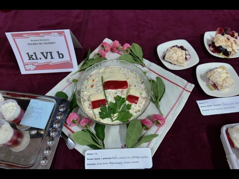 12 listopada w naszej szkole odbył się Szkolny Konkurs Kulinarny „Polska na talerzu”, skierowany do uczniów klas IV–VIII. Uczestnicy — indywidualnie lub w zespołach — zaprezentowali swoje „potrawy patriotyczne”, czyli dania inspirowane barwami biało-czerwonymi i polską tradycją kulinarną.