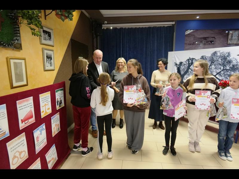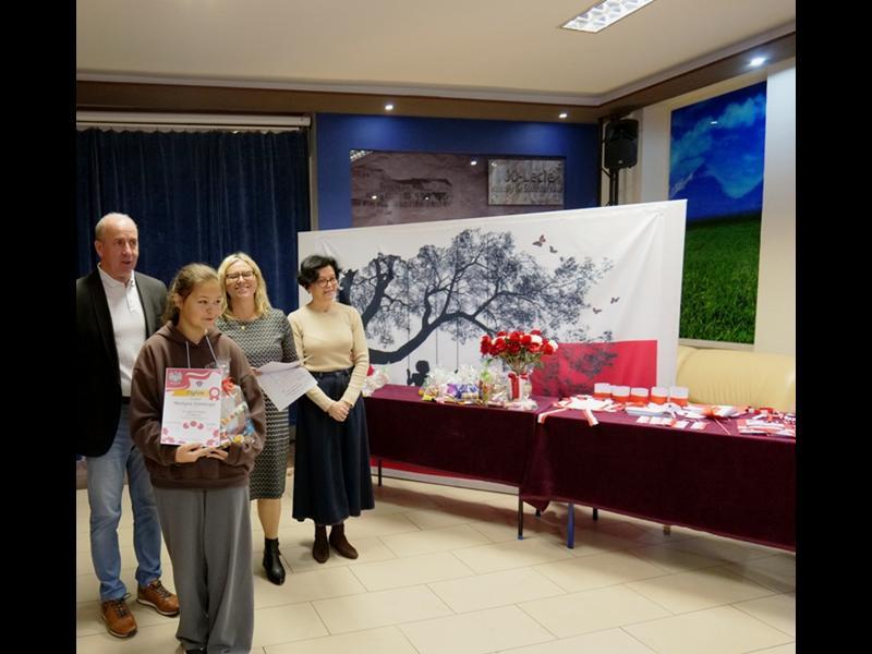 17 listopada na holu szkolnym odbyło się uroczyste rozdanie nagród w konkursie na Gadżety Patriotyczne, które wręczył Dyrektor Szkoły pan Paweł Łabuda. Dyrektor podziękował organizatorom i uczniom za zaangażowanie, udział a także przeprowadzenie tak wielu inicjatyw dotyczących Tygodnia Patriotycznego.