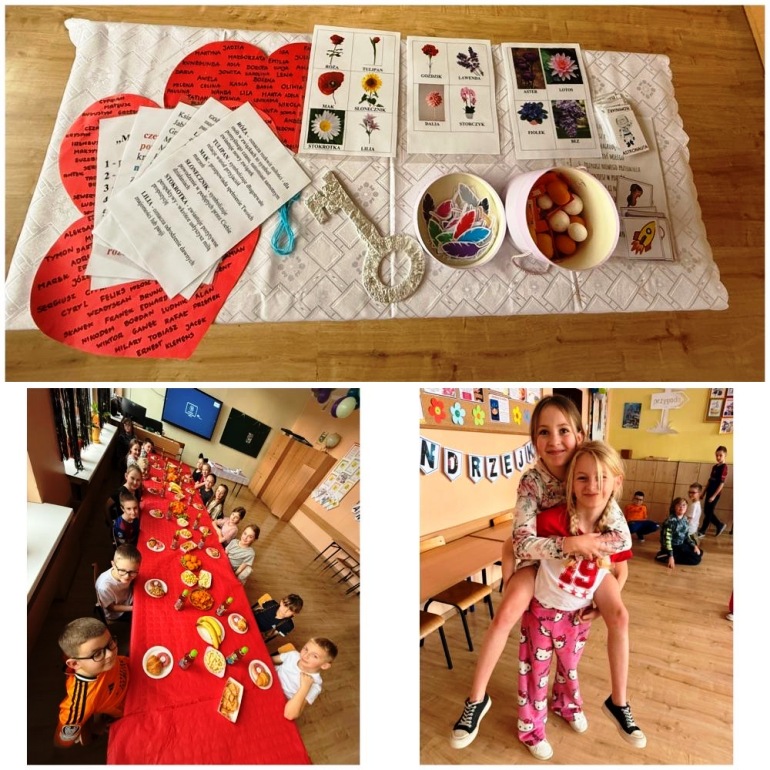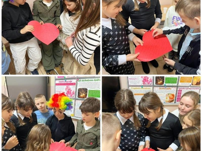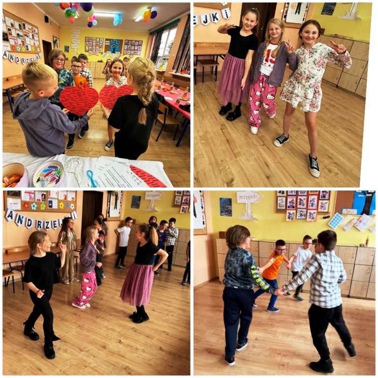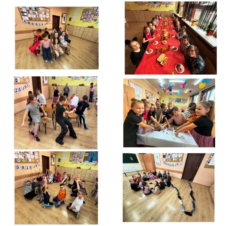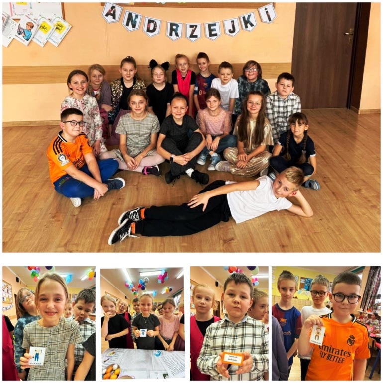 W ostatnim tygodniu listopada bieżącego roku w naszej szkole dzieci z edukacji przedszkolnej i wczesnoszkolnej uczestniczyły w zabawie andrzejkowej. Uczniowie brali udział w tradycyjnych wróżbach andrzejkowych, takich jak lanie wosku, losowanie karteczek z zawodami, wybieranie magicznych kluczy oraz ustawianie butów, aby sprawdzić, komu pierwszemu spełnią się marzenia. Zabawy prowadzone były w radosnej atmosferze, a dzieci chętnie angażowały się w każde działanie.