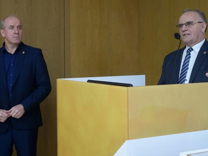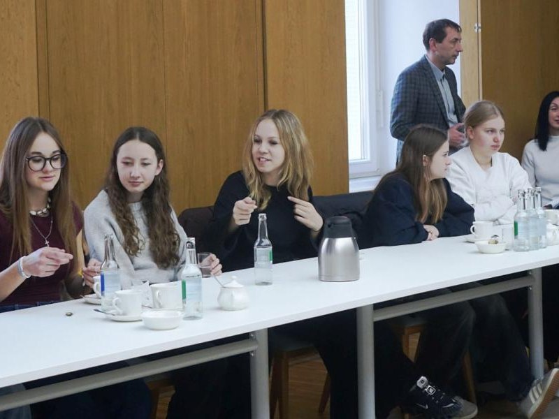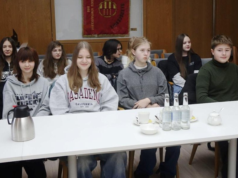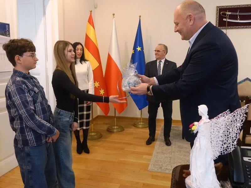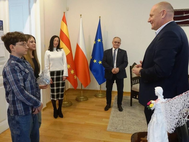 W programie znalazło się również spotkanie ze starostą panem Tadeuszem Zarembą. Przedstawiciele uczniów wręczyli gospodarzowi powiatu symboliczny upominek i przekazali życzenia od całej społeczności szkolnej.
