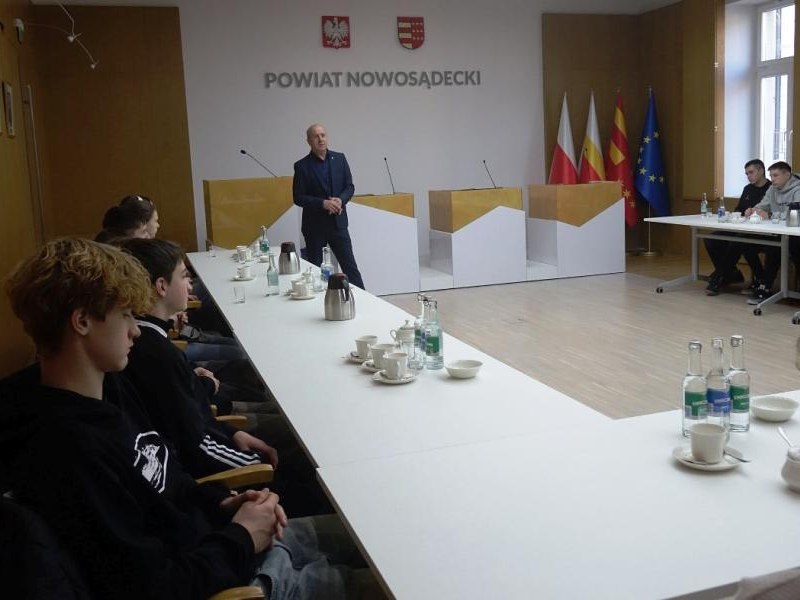 Podczas wizyty uczniowie spotkali się z wicestarostą panem Antonim Koszykiem, który podkreślił, że w sali obrad, gdzie odbyły się zajęcia, zapadają ważne decyzje dla mieszkańców Powiatu.