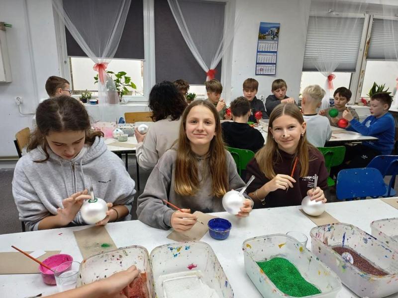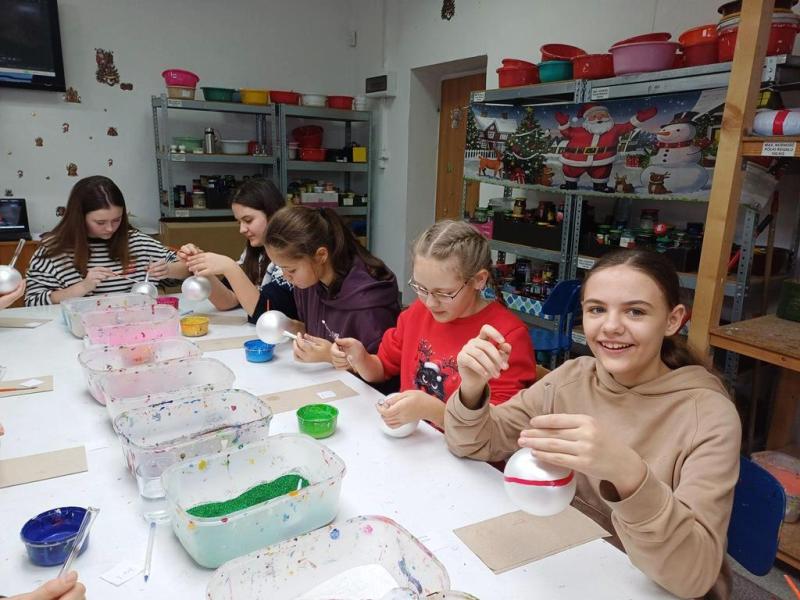 Największą atrakcją okazały się jednak warsztaty. Każdy uczestnik mógł stworzyć własną bombkę: niektóre wyszły subtelne i eleganckie, inne lśniły jak milion gwiazd. Po twórczej części dnia klasa 6a poszła na spacer Podziemną Trasą w Olkuszu. Korytarze, piwnice i dawne zakamarki miasta przywitały uczniów chłodem i historią. Przewodniczka opowiadała o dawnym Olkuszu, górnictwie i życiu mieszkańców, a uczestnicy wycieczki mogli wszystko zobaczyć z bliska, dosłownie pod powierzchnią rynku.