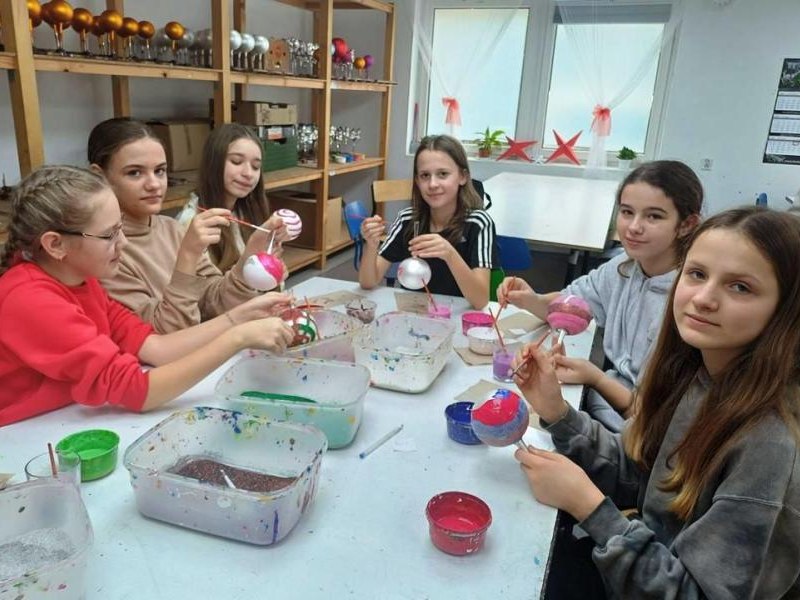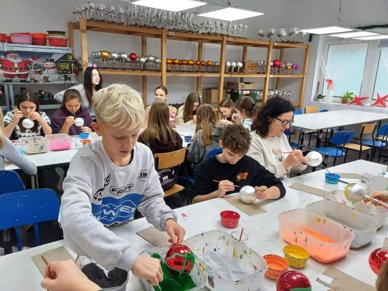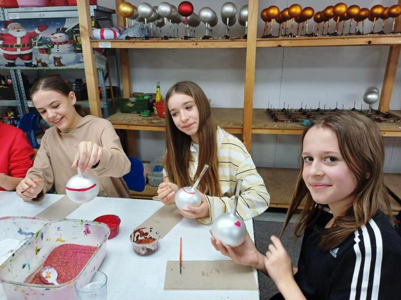 9 grudnia klasa 6a ruszyła do Olkusza. Na miejscu czekała ich pierwsza atrakcja: wizyta w Fabryce Bombek. Samo wejście do hali było jak wkroczenie do prawdziwej świątyni świątecznego rzemiosła. Pracownicy pokazali, jak powstają bombki – od rozgrzanego szkła aż po ostatni brokatowy szlif.