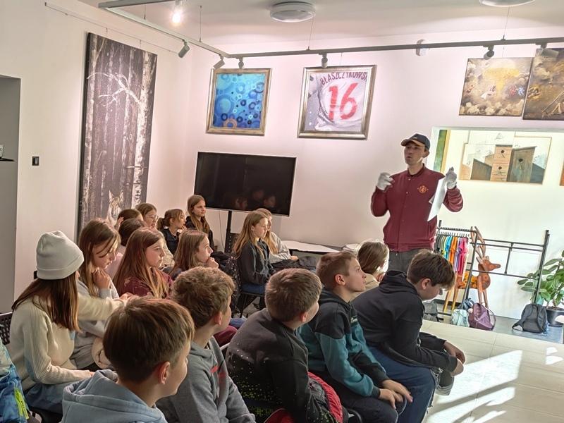 Po seansie uczniowie wzięli udział w prelekcji w Galerii Sztuki Mgr Mors, podczas której poznali tajniki tworzenia murali oraz zapoznali się z wybranymi dziełami Pana Mariusza Brodowskiego. Spotkanie to pozwoliło im lepiej zrozumieć sposób pracy artystów oraz bogactwo środków wyrazu w sztuce.