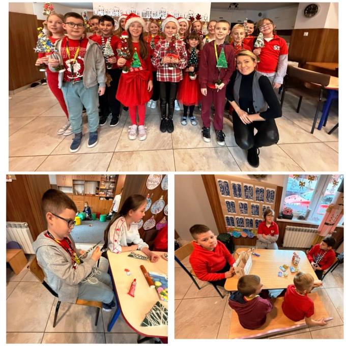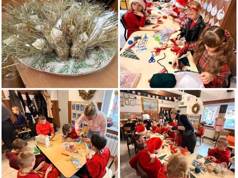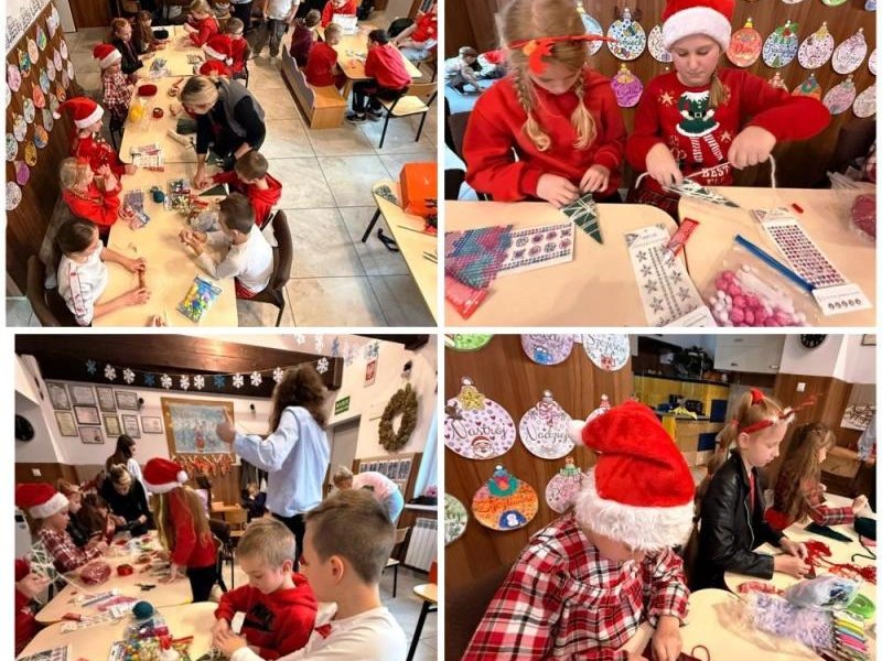 W ostatnich dniach przed świętami w klasach 0-3 odbyły się warsztaty bożonarodzeniowe. To wyjątkowe wydarzenie pozwoliło wszystkim uczestnikom spędzić czas w radosnej, świątecznej atmosferze, rozwijając jednocześnie swoje zdolności artystyczne. Podczas warsztatów uczniowie pod opieką swoich wychowawczyń ustroili klasowe choinki, wykonali dekoracje, którymi ustroili swoje sale lekcyjne. Następnie w świetlicy szkolnej pod okiem Pani mgr Doroty Leśniak mieli okazję tworzyć piękne ozdoby świąteczne, stroiki bożonarodzeniowe, choineczki, aniołki, oraz małego Jezuska z masy solnej. Dzieci z entuzjazmem podchodziły do wykonywania swoich prac, wykazując się kreatywnością i współpracą w grupach. Wykonane prace uczniowie zabiorą do domu jako pamiątkę i element świątecznego wystroju. Zapraszamy do obejrzenia zdjęć, na których dzieci z dumą prezentują własnoręcznie wykonane prace.