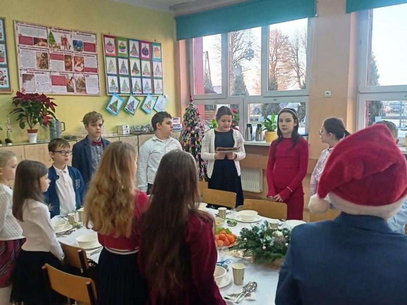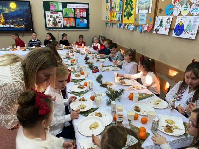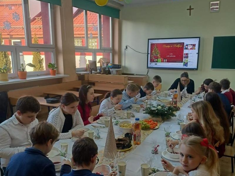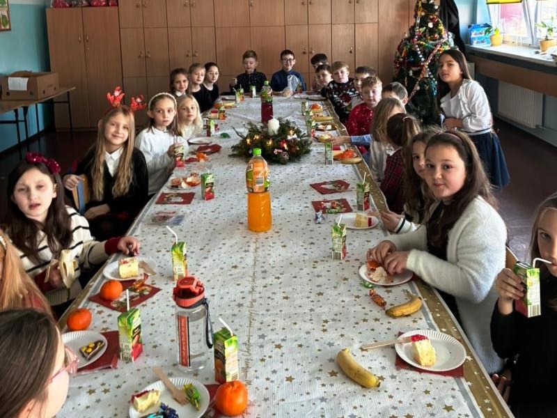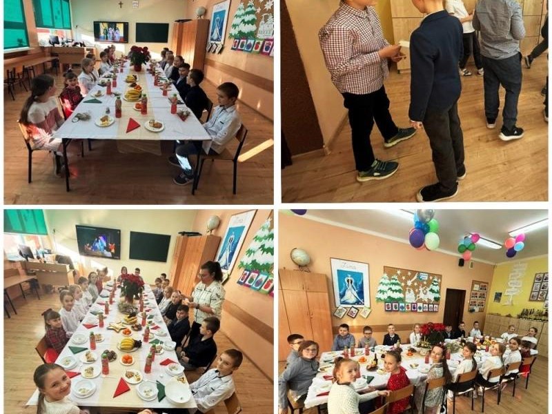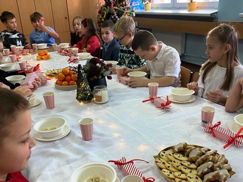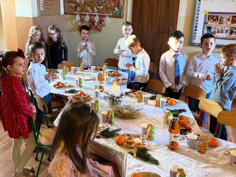 W piątek 19 grudnia 2025 r. w naszej szkole odbyła się uroczysta wigilia klas 0–III. Spotkanie rozpoczęły piękne jasełka przygotowane przez starszych uczniów, które wprowadziły wszystkich w wyjątkowy, świąteczny nastrój. Następnie dzieci z młodszych klas udały się do swoich sal, gdzie czekały na nie pięknie przygotowane stoły wigilijne, pełne świątecznych dekoracji i tradycyjnych akcentów, przygotowane z ogromnym zaangażowaniem przez Rodziców. Zgodnie z tradycją odbyło się łamanie się opłatkiem, składanie życzeń oraz wspólne śpiewanie kolęd, które stworzyło atmosferę bliskości, radości i prawdziwie świątecznej magii. Był to czas pełen ciepła, uśmiechów i wzajemnej życzliwości. Serdecznie dziękujemy Rodzicom za zaangażowanie, pomoc i serce włożone w przygotowanie wigilii – dzięki Państwu ten dzień był dla dzieci wyjątkowy i niezapomniany.