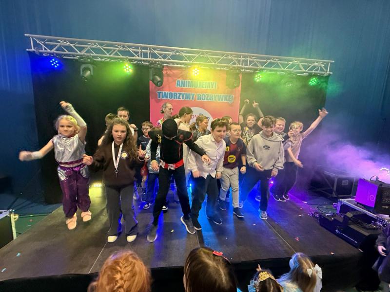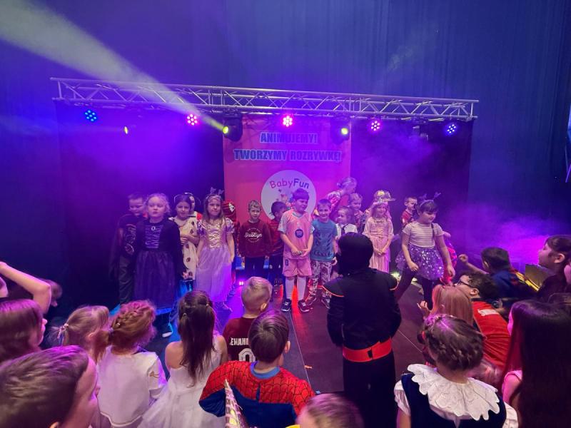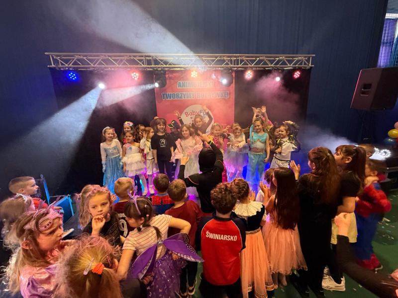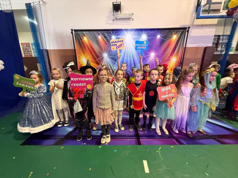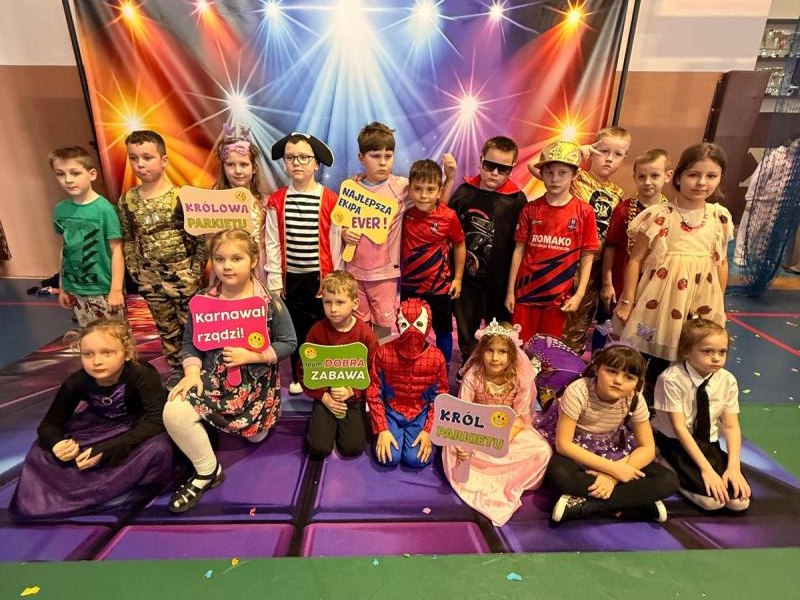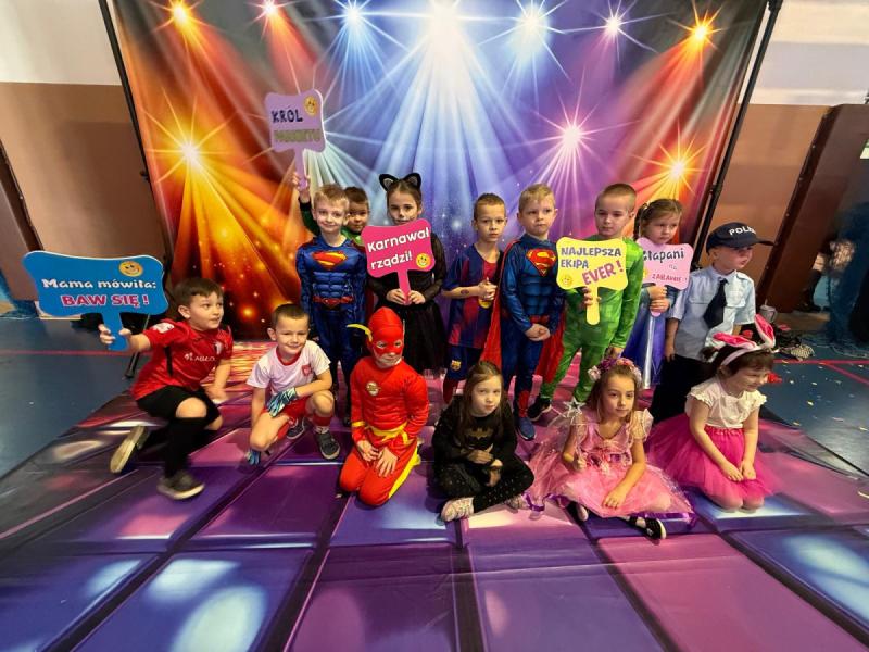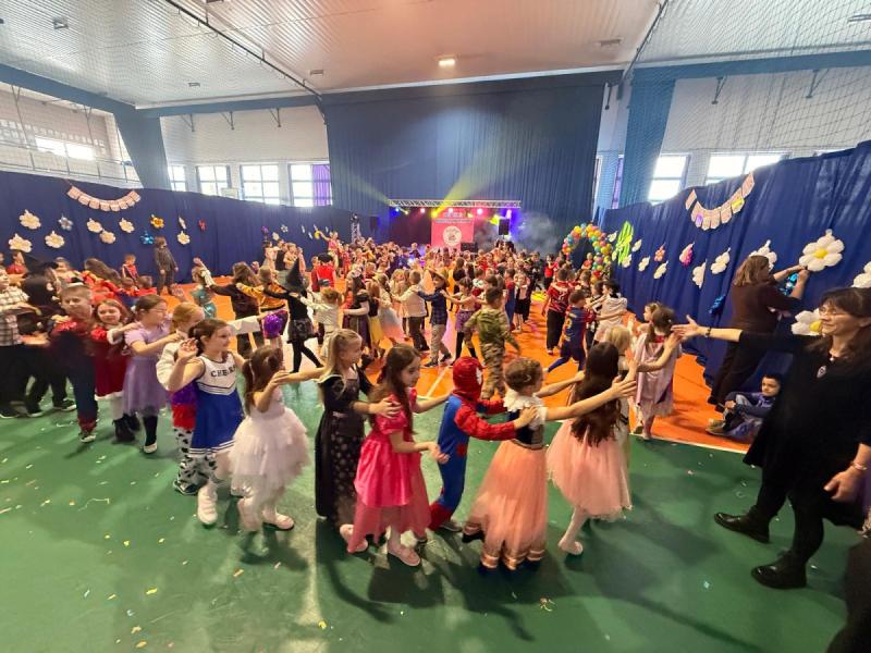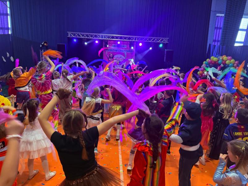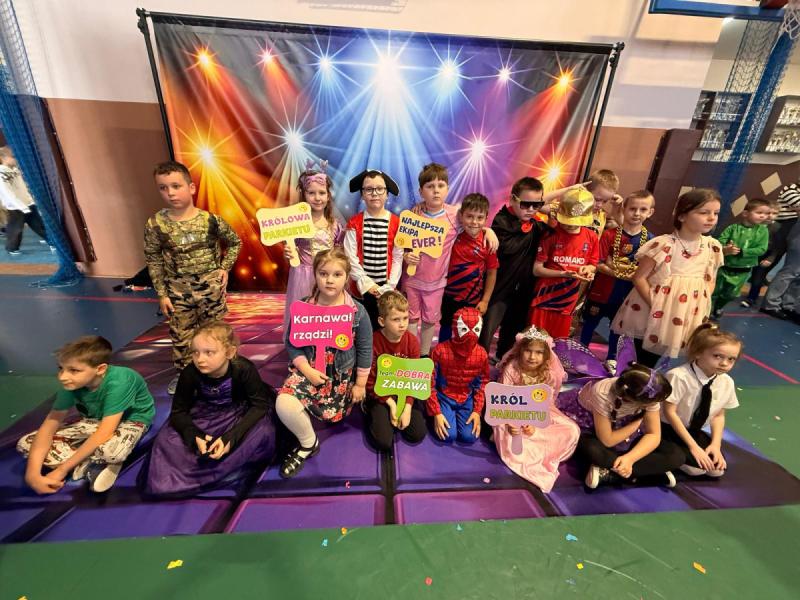 Dnia 15 stycznia 2026 roku uczniowie klas 0–III wzięli udział w niezwykle radosnej i kolorowej zabawie karnawałowej, którą profesjonalnie poprowadzili animatorzy z grupy BabyFun. Sala gimnastyczna zamieniła się w prawdziwą salę balową wypełnioną postaciami z bajek, superbohaterami i barwnymi motylami, a radosna muzyka od samego rana zachęcała wszystkich do wspólnych pląsów. Ekipa BabyFun zapewniła dzieciom moc atrakcji, wciągając je do dynamicznych układów tanecznych, pomysłowych konkursów zręcznościowych oraz zabaw z ogromną balonową piłką. Wyjątkową atmosferę dopełniły efekty specjalne, w tym sztuczny śnieg, tysiące baniek mydlanych, które wzbudziły ogromny zachwyt wśród najmłodszych uczestników. W przerwach między tanecznymi szaleństwami dzieci odpoczywały w klasach przy słodkim poczęstunku, dzieląc się wrażeniami z rówieśnikami. Dzięki wielkiemu zaangażowaniu prowadzących oraz kreatywności rodziców, którzy przygotowali wspaniałe stroje, tegoroczny bal stał się niezapomnianym przeżyciem pełnym uśmiechu i zintegrował całą społeczność klas młodszych. Kiedy czas zabawy dobiegł końca dzieci z żalem opuściły salę gimnastyczną. Jednak do domów wracały we wspaniałych humorach, dzieląc się z rodzicami swoimi przeżyciami.