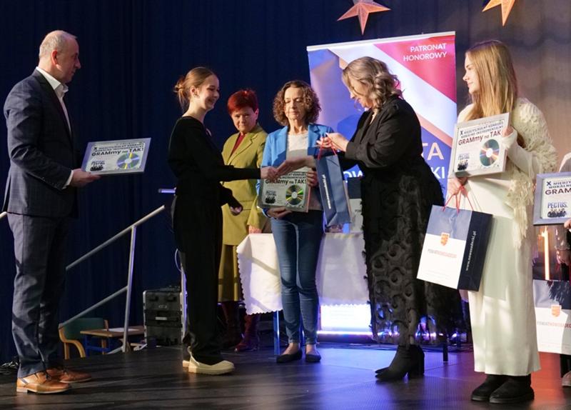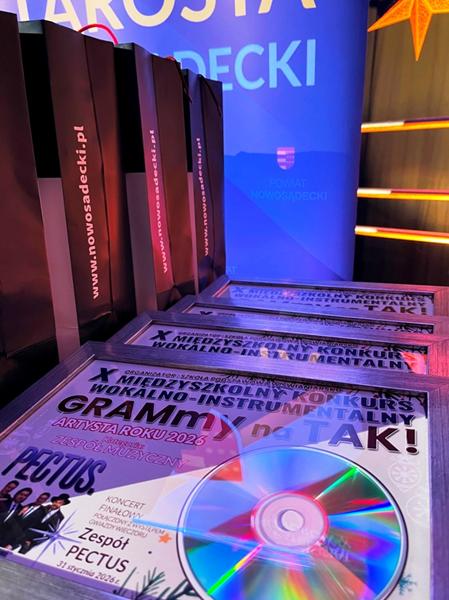 Z ogromną satysfakcją i wzruszeniem zamykamy jubileuszową edycję naszego Konkursu GRAMmy na tak! Składamy najserdeczniejsze podziękowania wszystkim uczestnikom za ich odwagę, pasję i godziny spędzone na doskonaleniu swoich talentów – to Wasze występy nadały temu świętu blasku. Szczególne słowa uznania kierujemy do nauczycieli i instruktorów, których pedagogiczny trud zaowocował tak wysokim poziomem artystycznym. Dziękujemy również szanownej Komisji Konkursowej – Jury, której przewodniczył pan Tomasz Gad, członkom: pani Małgorzacie Borek, panu Pawłowi Ferencowi oraz panu Adamowi Leśniakowi za profesjonalną ocenę. Składamy też serdeczne podziękowania Staroście Nowosądeckiemu- pana Tadeuszowi Zarembie za objęcie Honorowym Patronatem naszego konkursu i nadanie temu wydarzeniu szczególnego charakteru i rangi prestiżowego święta kultury w naszym regionie.