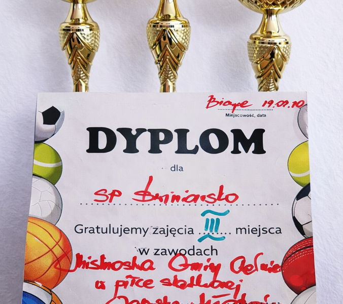 Nasza drużyna w grupie eliminacyjnej po bardzo wyrównanej walce przegrała mecz z Biczycami Dolnymi późniejszym mistrzem gminy i wygrała z Librantową tym samym zajmując drugie miejsce w grupie. Zgodnie z regulaminem 1 miejsca z grup zagrały finał / Biczyce Dolne – Chełmiec/, a drugie miejsca z grup walczyły o 3 miejsce / Świniarsko – Wielogłowy/. Po bardzo wyrównanym meczu nasza drużyna pokonała Wielogłowy i końcowo zajęła 3 miejsce. Puchary i dyplomy wręczył Dyrektor Szkoły w Biczycach Dolnych. Bardzo serdecznie gratulujemy naszym zawodnikom odniesionego sukcesu.