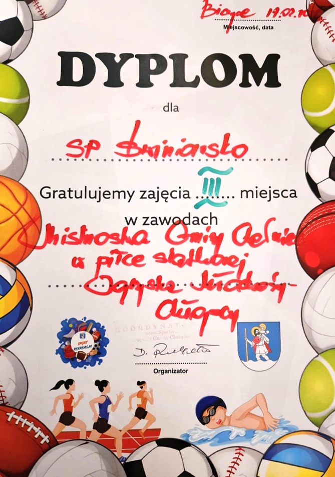 Kotas Antoni, Obrzut Jakub, Zygmunt Adrian / klasa VIIa/, Gądek Maciej / VIIb/, Głuc Dominik, Jodłowski Mateusz / 7c/, Drzyzga Adrian, Padula Jakub / VIIIa/, Majda Franciszek, Mrzygłód Maksymilian, Szkaradek Szymon / VIIIb/. W turnieju wzięło udział 6 szkół z gminy Chełmiec, które rozegrały mecze w dwóch grupach eliminacyjnych.