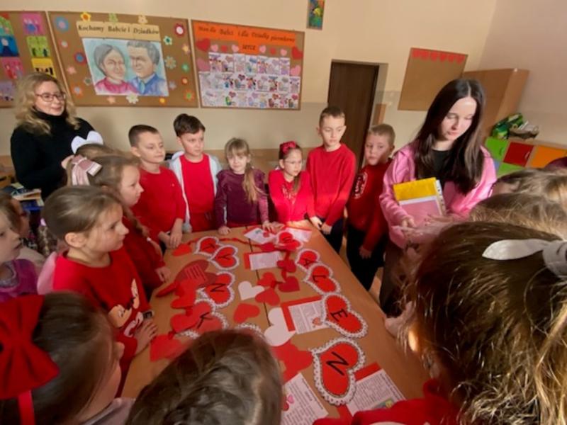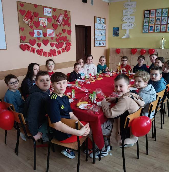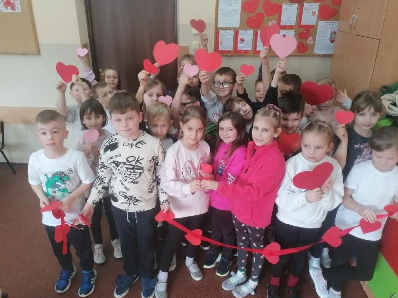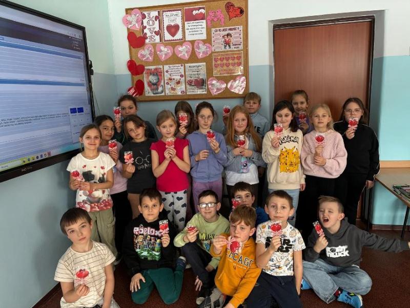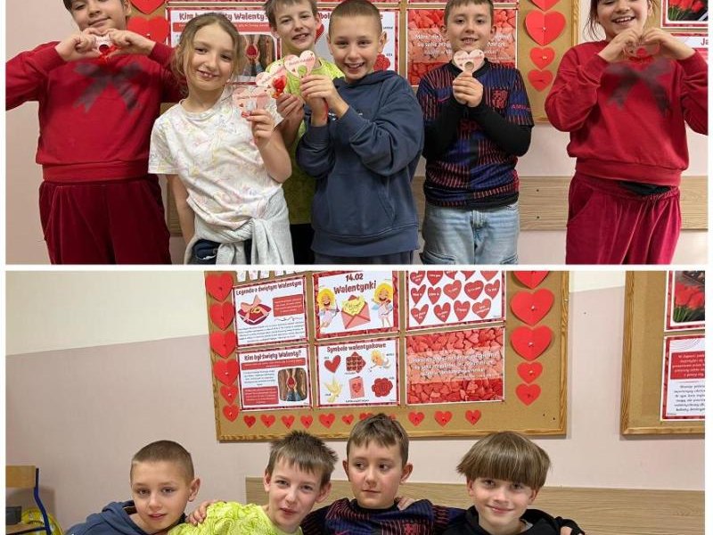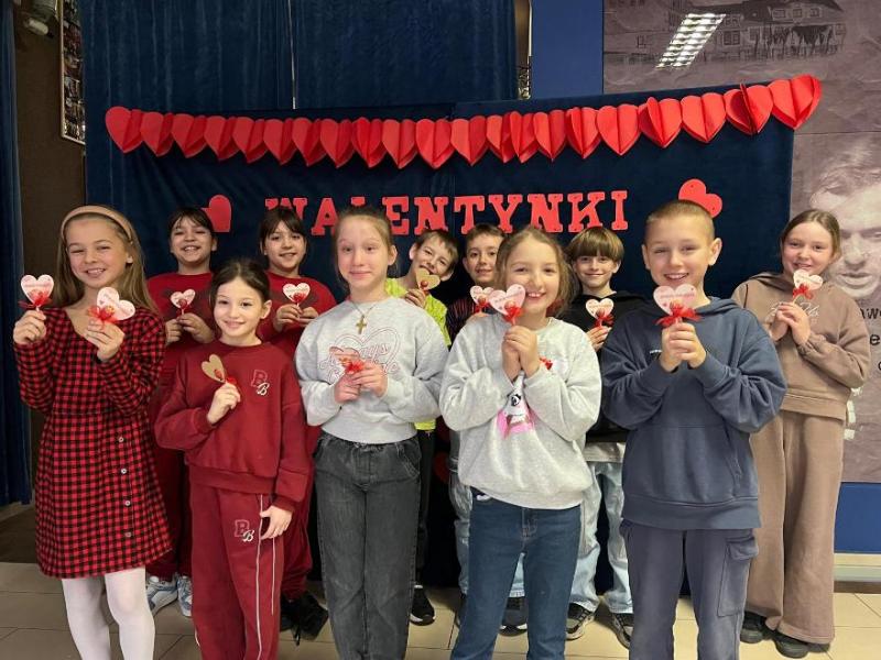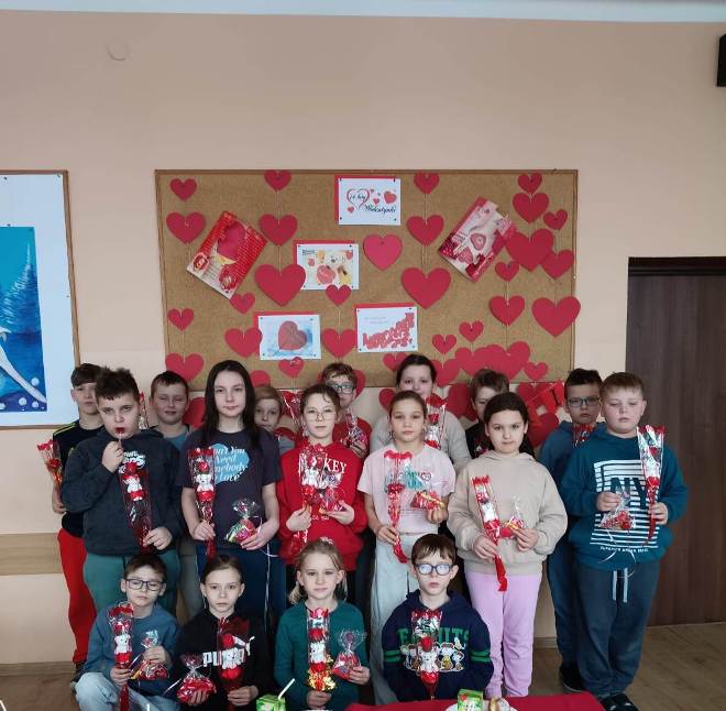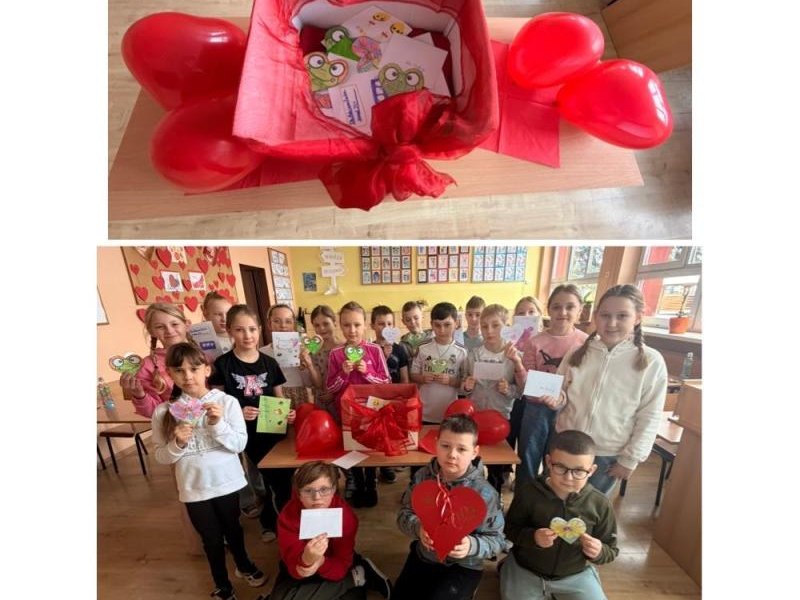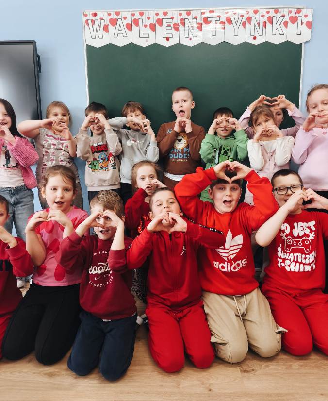 Pozytywne myślenie o którym tyle mówimy w naszej szkole korzystnie wpływa na nasze relacje międzyludzkie. Osoby o pozytywnym nastawieniu łatwiej nawiązują kontakty, są bardziej otwarte. Ludzie wokół nas naturalnie reagują na nasze emocje, ale najbardziej kochają optymistów. Pozytywne myślenie to inwestycja, która z czasem zwraca się w postaci lepszego zdrowia, bardziej udanych relacji i głębszego poczucia szczęścia. Organizowanie oczywiście takich małych, klasowych uroczystości jakimi są walentynki, które w naszej szkole przypadają na 16,17 lutego 2026r. uczą wdzięczności w stosunku do drugiego człowieka. Pod takim kątem organizowane są różnorodne zajęcia w edukacji przedszkolnej i wczesnoszkolnej. Na lekcjach z przedmiotów artystycznych dzieci wykonały drzewka walentynkowe, kartki, pieczątki, słoiczki wdzięczności, sercowe wzory. Z powodzeniem nauczyciele wprowadzili walentynkowe zabawy, które są wspaniałą okazją do integracji grupy. Nie zabrakło radości przy walentynkowych memorach, walentynkowych puzzlach interaktywnych, labiryntu z sercem. Uczniowie uczestniczyli także w walentynkowym quizie interaktywnym. W tym dniu tradycyjnie zorganizowano również pocztę walentynkową. Uczniowie klas I-III, którzy chcieli przekazać życzenia swoim sympatiom. Kilka dni wcześniej wrzucali własnoręcznie wykonane serca, kartki, liściki do szkolnej skrzyni. Następnie – Walentynkowy Listonosz „Amorek” – rozdawał pocztę.