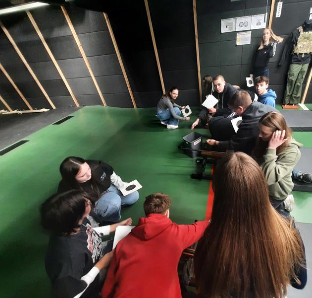 Uczniowie klasy 8 b w dniu 12.03.2026 r. odwiedzili strzelnicę w Powiatowym Centrum Sportu w Marcinkowicach w ramach zajęć z edukacji dla bezpieczeństwa. Podczas wizyty zapoznali się z zasadami bezpiecznego zachowania na strzelnicy oraz podstawami posługiwania się bronią.