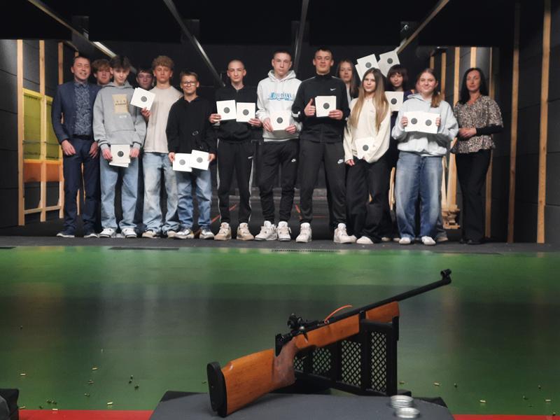 Uczniowie klasy 8a w dniu 19.03.2026 r. odwiedzili strzelnicę w Powiatowym Centrum Sportu w Marcinkowicach w ramach zajęć z edukacji dla bezpieczeństwa. Podczas wizyty zapoznali się z zasadami bezpiecznego zachowania na strzelnicy oraz podstawami posługiwania się bronią.