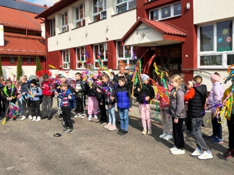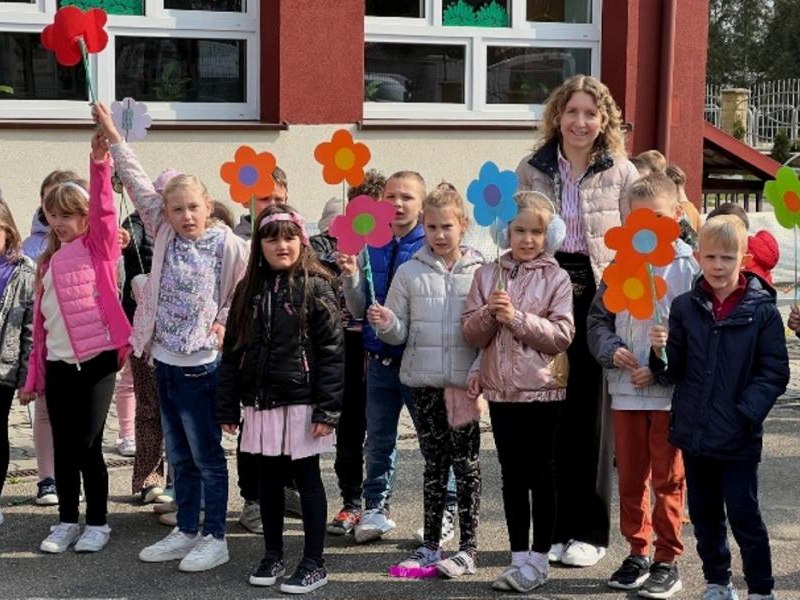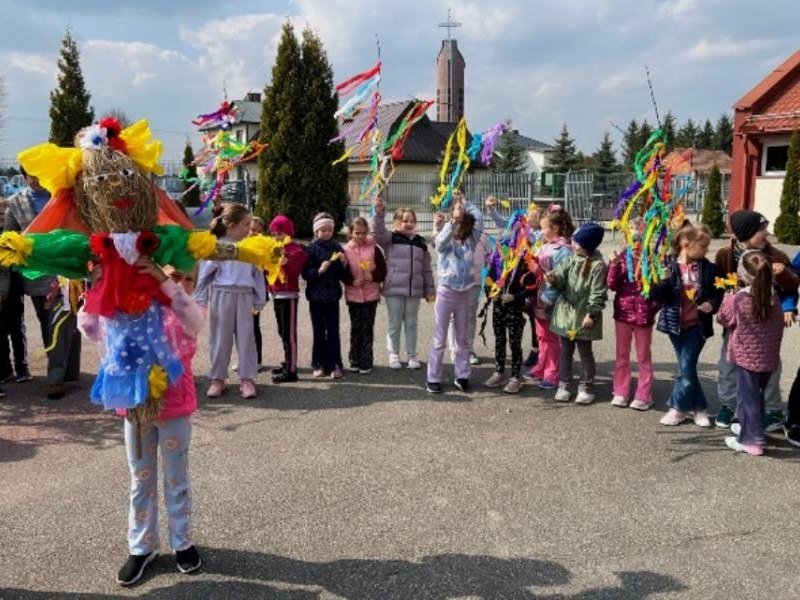 Kolejnym punktem obchodów był barwny korowód uczniów klas 1–3, który wyruszył na zewnątrz szkoły. Na jego czele niesiona była Marzanna – symbol odchodzącej zimy. Tradycyjnie wykonana ze słomy i ozdobiona kolorowymi materiałami, Marzanna od wieków towarzyszy obrzędom pożegnania zimy. Jej symboliczne „pożegnanie” oznacza koniec chłodnych dni i powitanie długo wyczekiwanej wiosny.