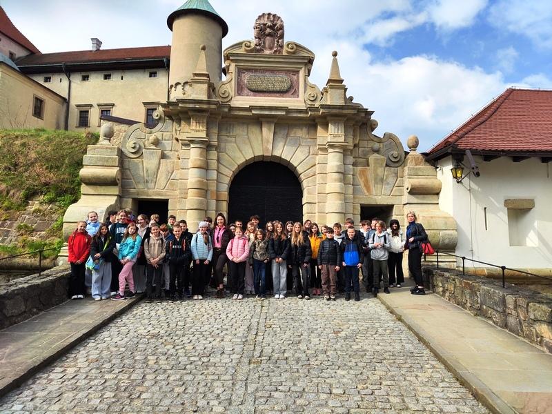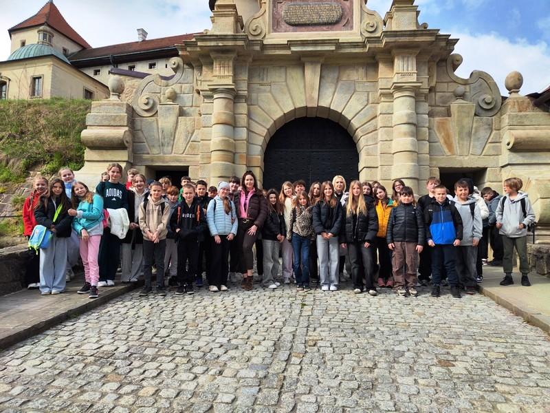 W dniu 15 kwietnia uczniowie klas piątych wzięli udział w niezwykłej wycieczce do Wiśnicza, która stała się dla nich prawdziwą podróżą w czasie. Podczas zwiedzania zabytkowego zamku młodzi odkrywcy mieli okazję poznać fascynującą historię tego miejsca, sięgającą średniowiecza, oraz zgłębić tajemnice życia jego dawnych mieszkańców. Monumentalne mury i majestatyczna architektura wzbudziły podziw oraz pobudziły wyobraźnię uczestników.