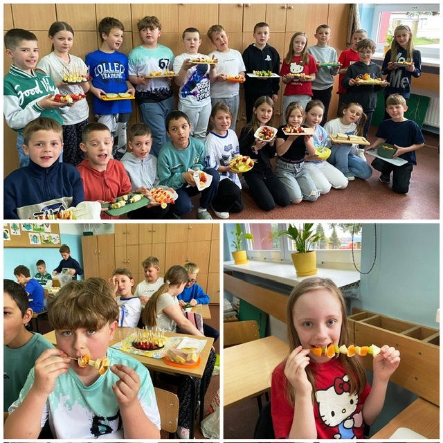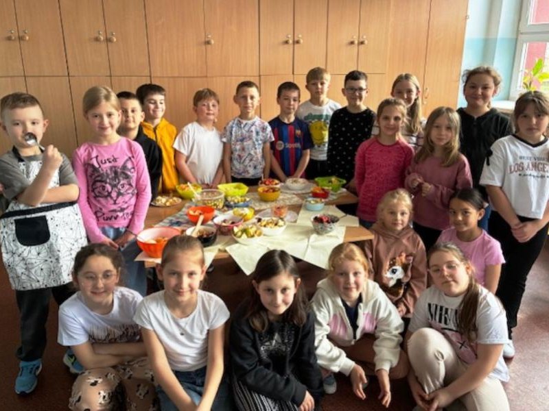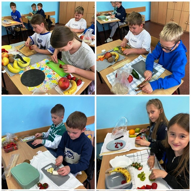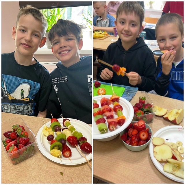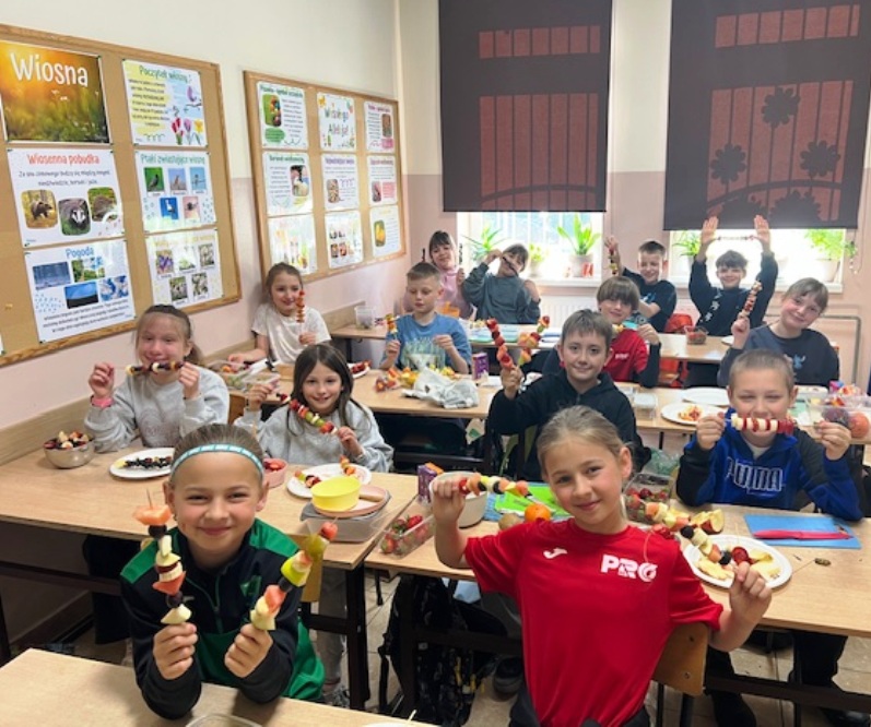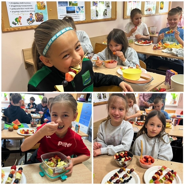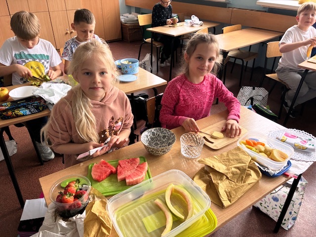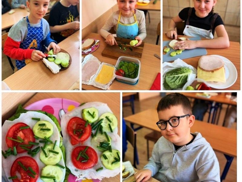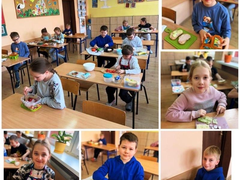 W dniach 20-24 kwietnia 2026 r. w klasach 0-III odbył się Tydzień Zdrowia. Głównym celem tego tygodnia było promowanie zdrowych nawyków żywieniowych, spożywania regularnych posiłków oraz nabycie wiedzy o skutkach nieodpowiedniej diety. Był to tydzień, który połączył edukację z praktycznym działaniem. Dzieci przypomniały sobie zasady zdrowego odżywiania, poznały Piramidę Zdrowego Żywienia, oglądały tematyczne filmy, wykonały plakaty o zdrowym odżywianiu. Centralnym punktem Tygodnia Zdrowia było samodzielne przygotowanie przez uczniów zdrowych kanapek, owocowych sałatek i szaszłyków z wykorzystaniem świeżych, wartościowych składników. Uczniowie wykazali się niebywałą kreatywnością komponując posiłki pełne kolorów i smaków. Tydzień ten był tez okazją do integracji, wspólne działania sprzyjały budowaniu relacji i kształtowaniu odpowiednich postaw zdrowotnych. Była to doskonała okazja, by móc zatroszczyć się o swoje zdrowie i cieszyć się smakiem! Pamiętajmy, że zdrowe odżywianie to klucz do sukcesu i pełnej energii na lekcjach!