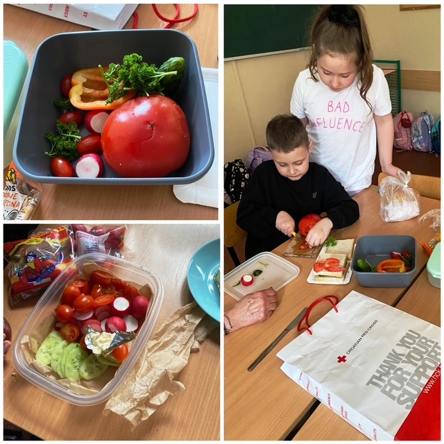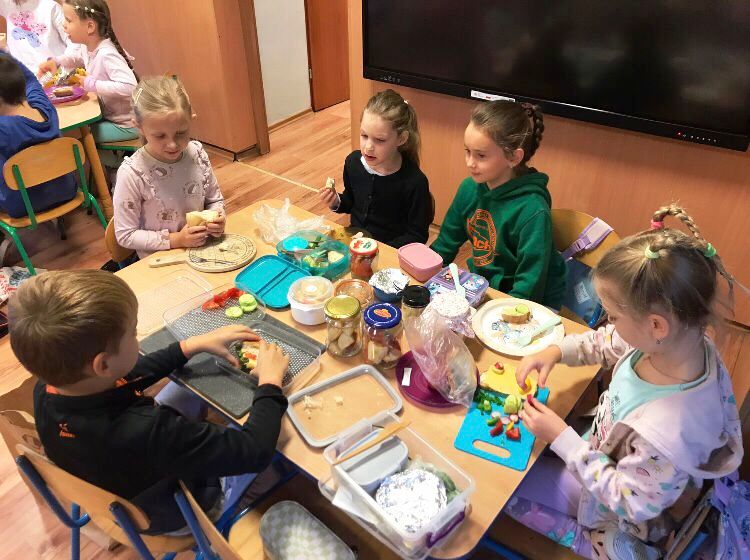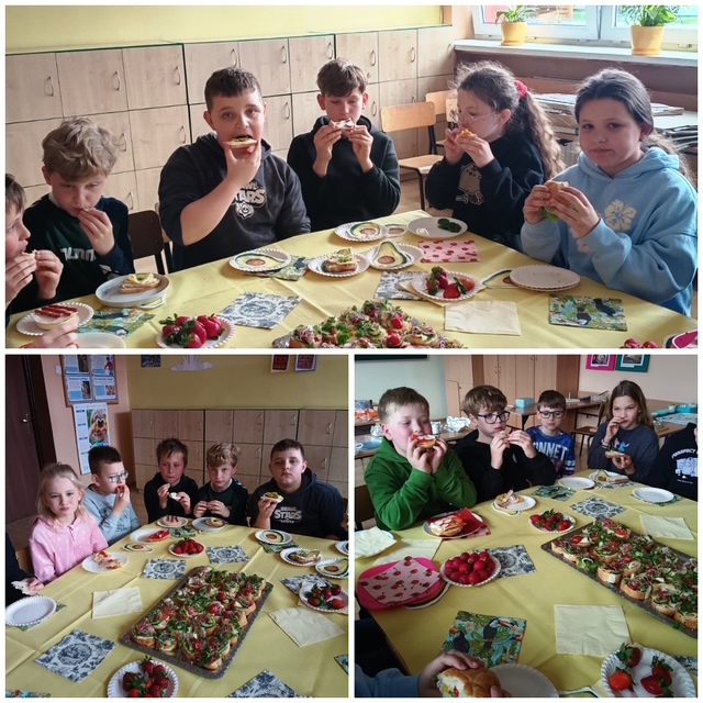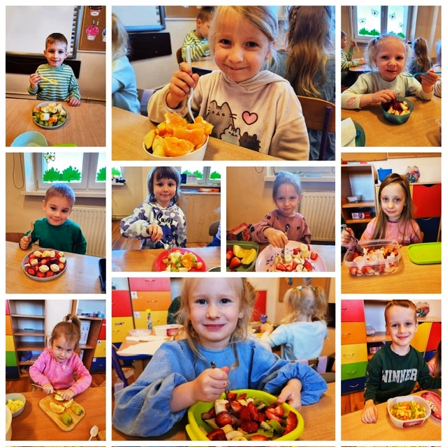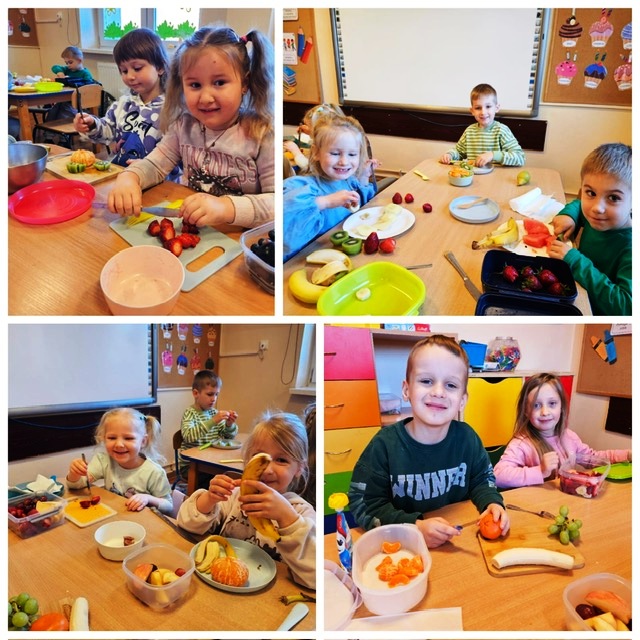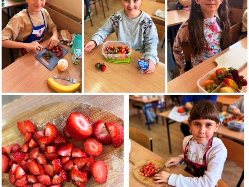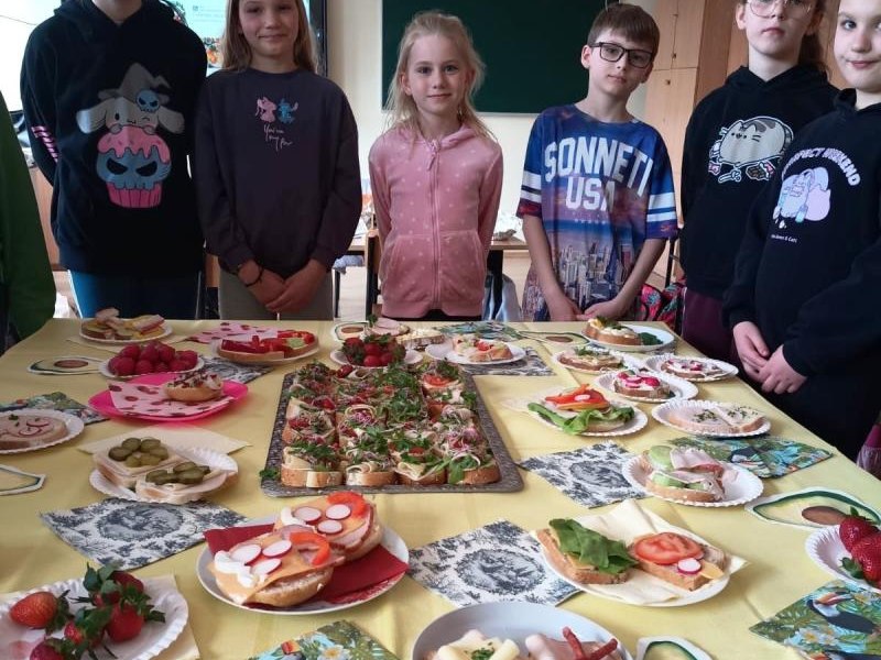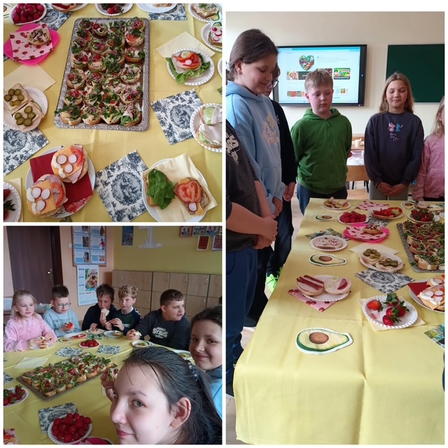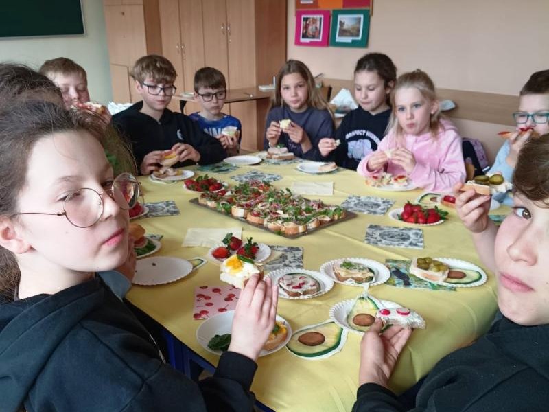 W dniach 20-24 kwietnia 2026 r. w klasach 0-III odbył się Tydzień Zdrowia. Głównym celem tego tygodnia było promowanie zdrowych nawyków żywieniowych, spożywania regularnych posiłków oraz nabycie wiedzy o skutkach nieodpowiedniej diety. Był to tydzień, który połączył edukację z praktycznym działaniem. Dzieci przypomniały sobie zasady zdrowego odżywiania, poznały Piramidę Zdrowego Żywienia, oglądały tematyczne filmy, wykonały plakaty o zdrowym odżywianiu. Centralnym punktem Tygodnia Zdrowia było samodzielne przygotowanie przez uczniów zdrowych kanapek, owocowych sałatek i szaszłyków z wykorzystaniem świeżych, wartościowych składników. Uczniowie wykazali się niebywałą kreatywnością komponując posiłki pełne kolorów i smaków. Tydzień ten był tez okazją do integracji, wspólne działania sprzyjały budowaniu relacji i kształtowaniu odpowiednich postaw zdrowotnych. Była to doskonała okazja, by móc zatroszczyć się o swoje zdrowie i cieszyć się smakiem! Pamiętajmy, że zdrowe odżywianie to klucz do sukcesu i pełnej energii na lekcjach!