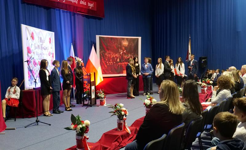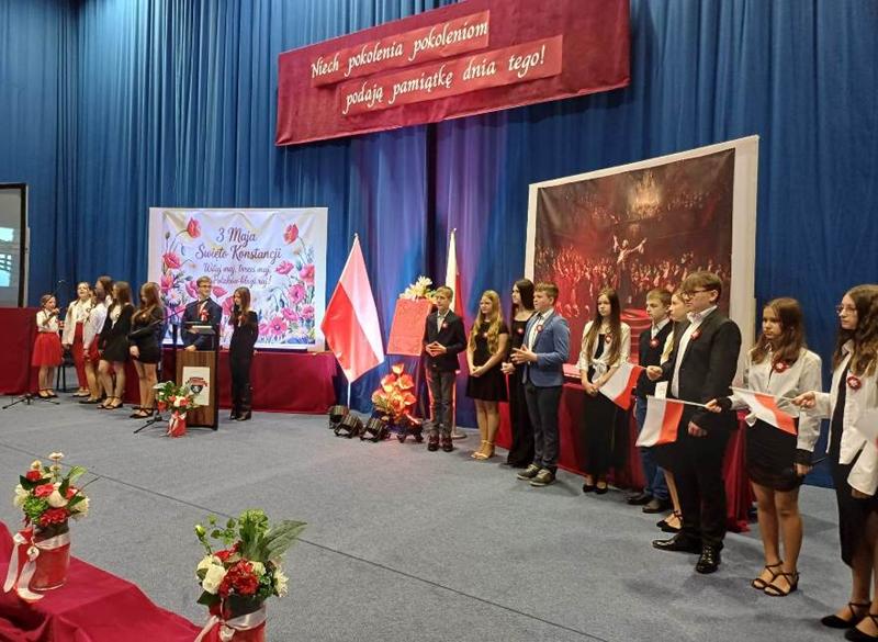 Ważnym elementem uroczystości było również nawiązanie do Dnia Flagi Rzeczypospolitej Polskiej, który obchodzimy tuż przed rocznicą uchwalenia Konstytucji. Uczniowie przypomnieli, jak istotne są symbole narodowe oraz jak wielką rolę odgrywają w budowaniu tożsamości narodowej.