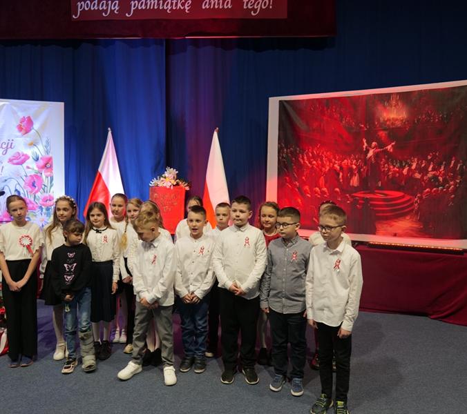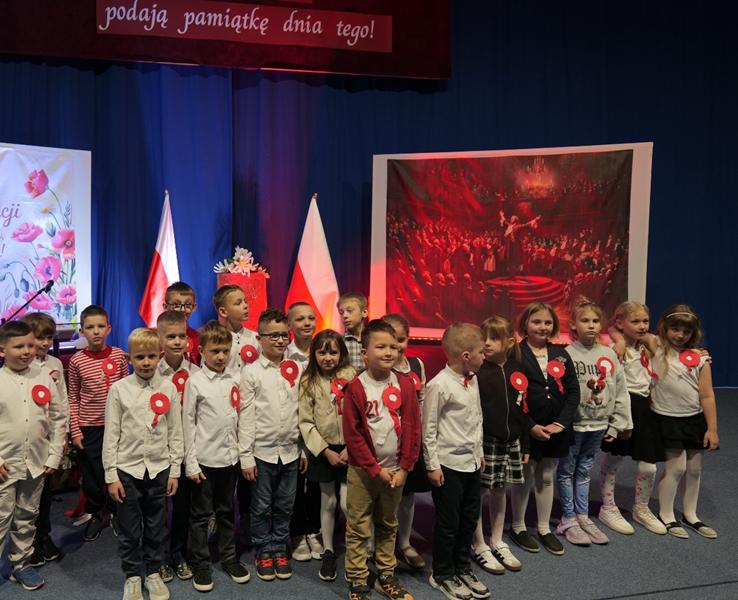 Program artystyczny był bogaty i poruszający. Uczniowie zaprezentowali fragmenty poezji patriotycznej oraz teksty nawiązujące do trudnej sytuacji Polski w XVIII wieku i dążeń do jej odrodzenia. Nie zabrakło również pieśni patriotycznych, takich jak „Witaj Maj 3 Maj” oraz „Rota” które wprowadziły zgromadzonych w podniosły i refleksyjny nastrój.